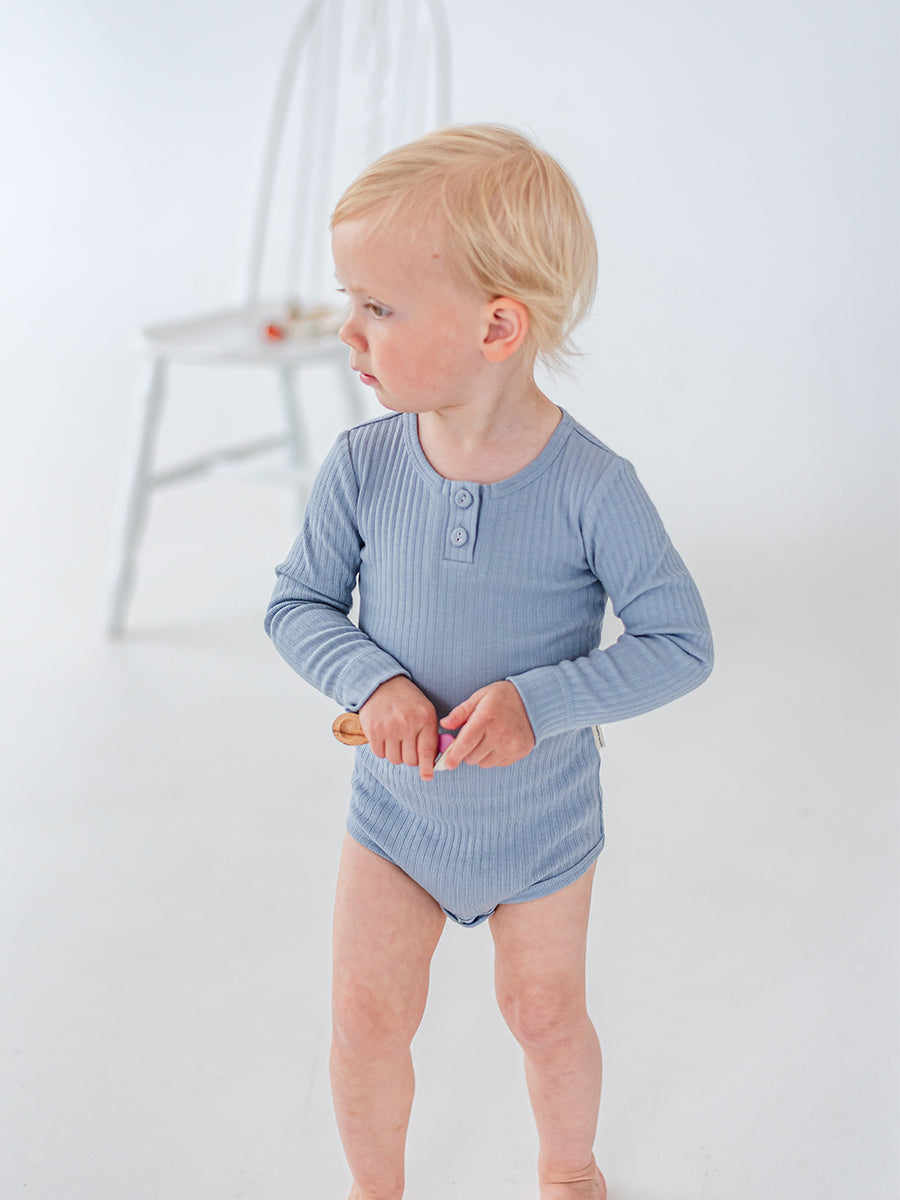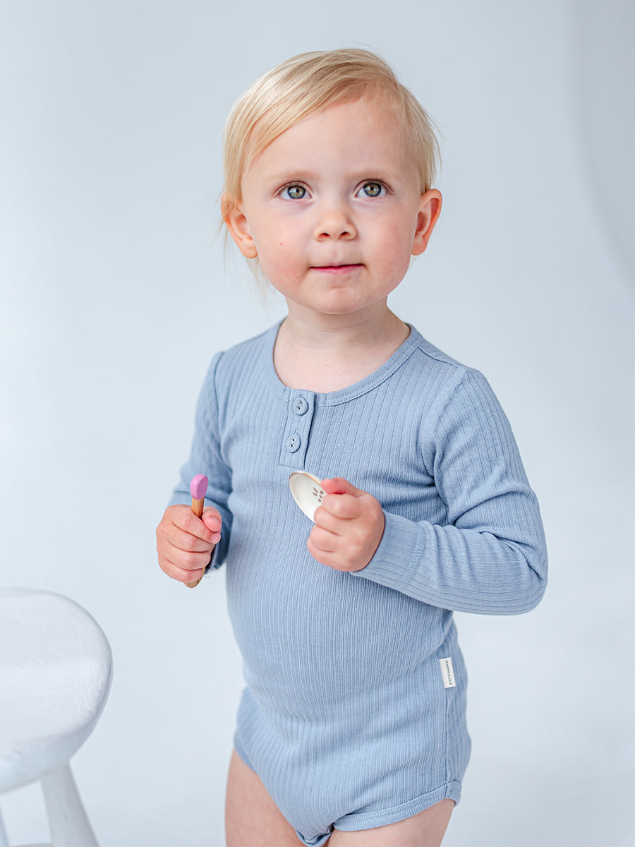 Organic Essential Long-Sleeve Bodysuit, Glacier