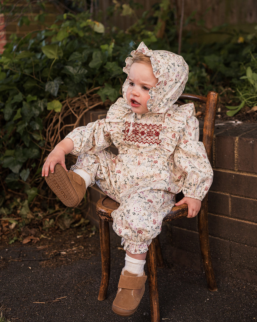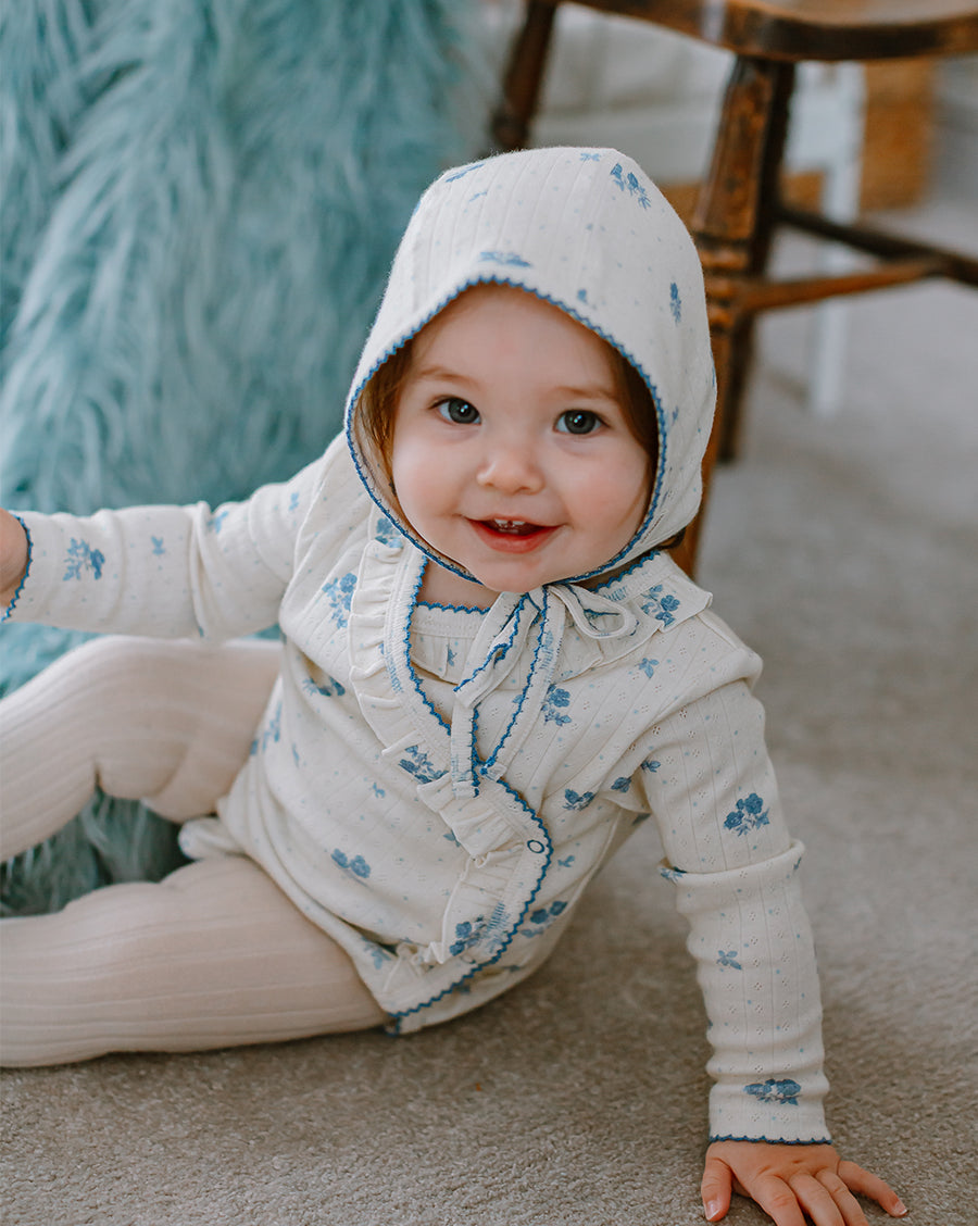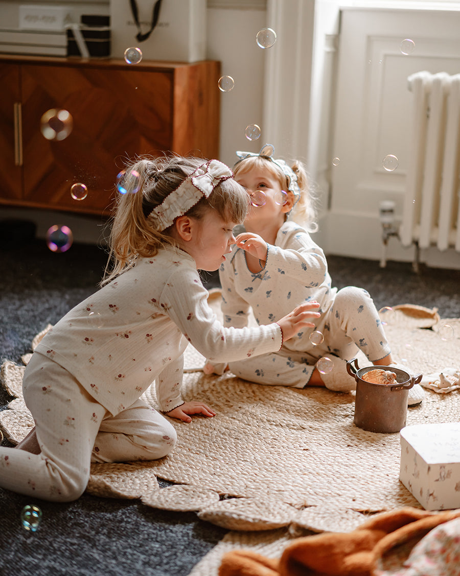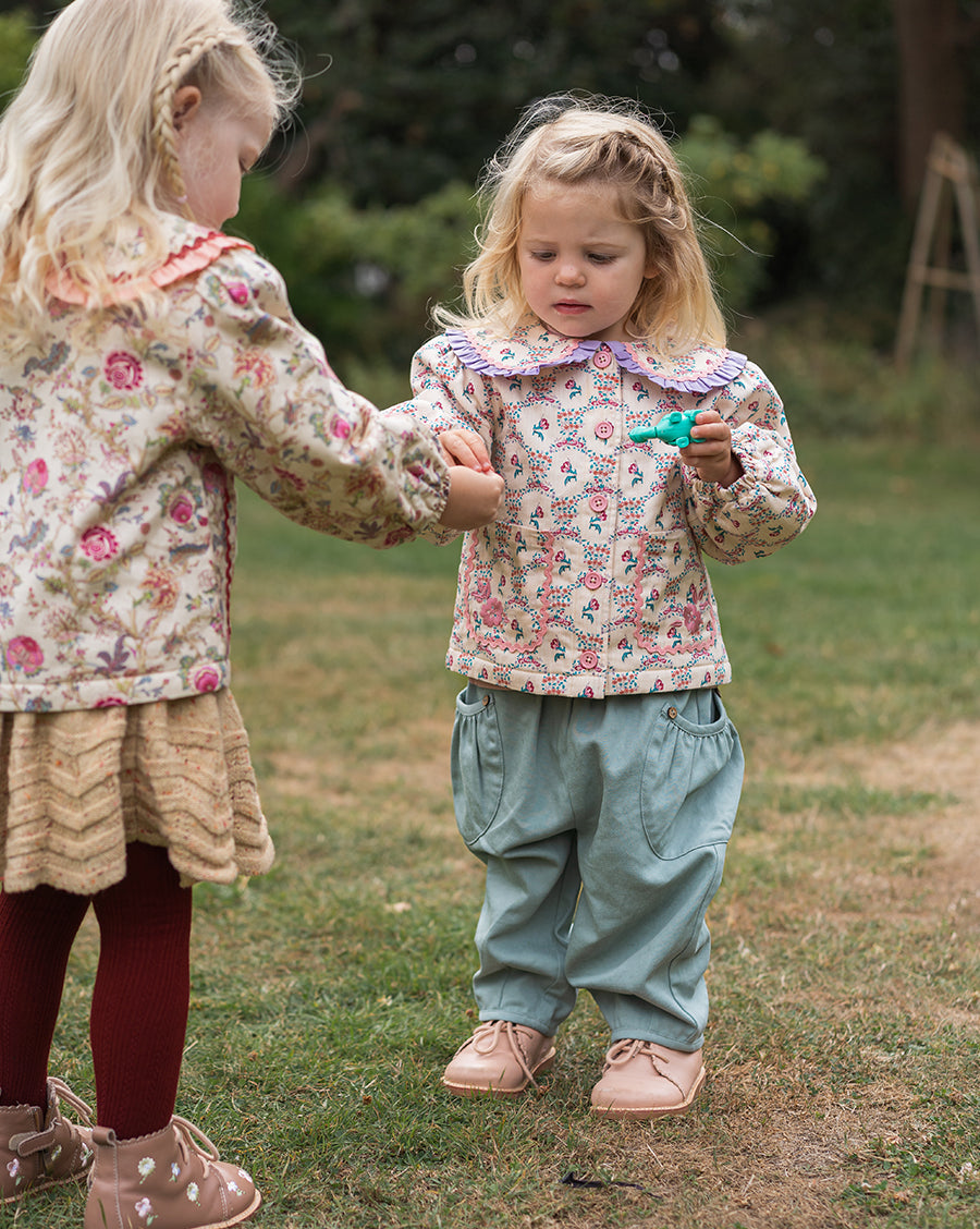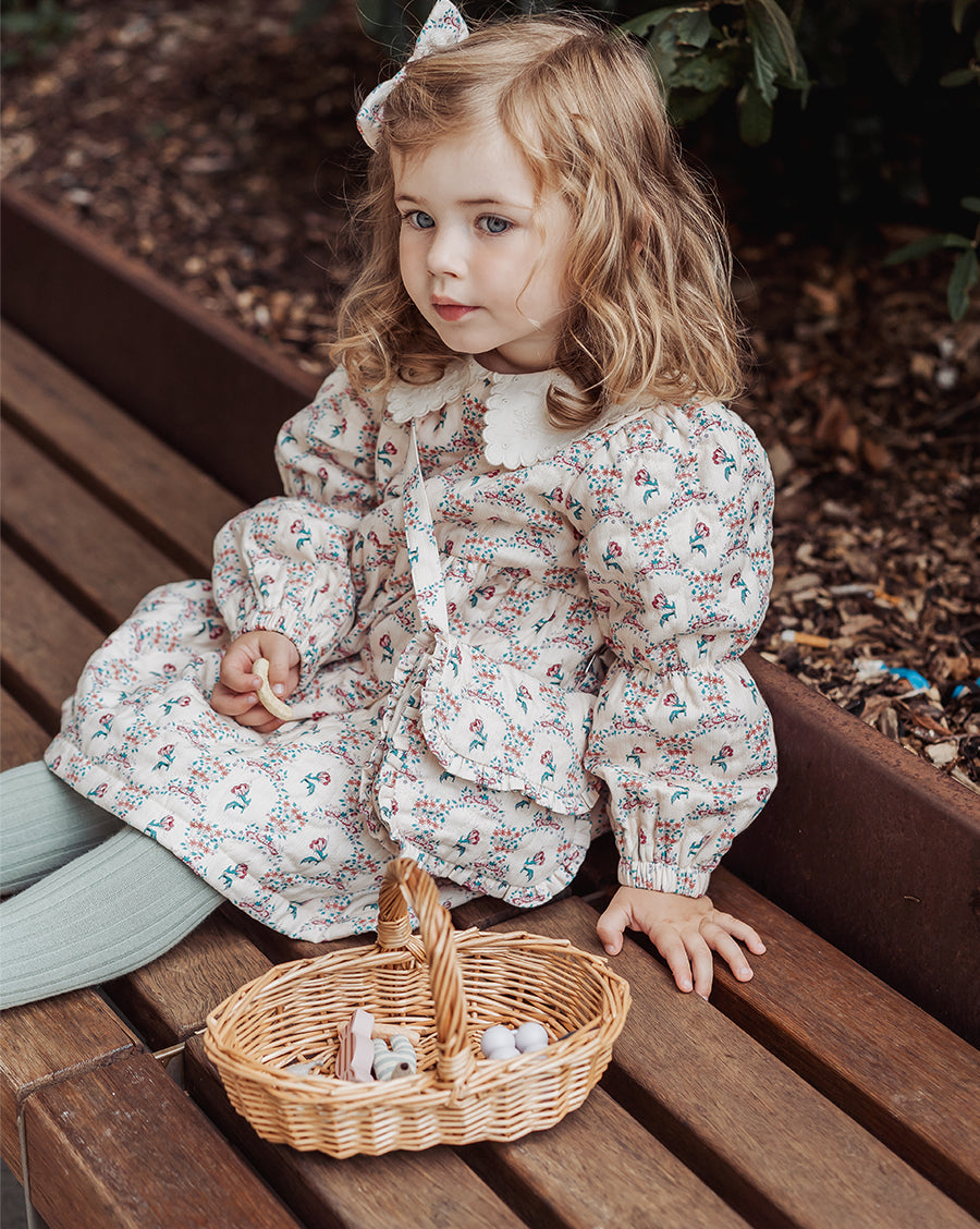 Inspired by English gardens, our florals are hand-drawn and designed in-house, then carefully printed on breathable and luxurious organic cotton. Each piece brings together artful detail, gentle comfort, and small-batch craftsmanship - made to be loved, worn, and passed on.