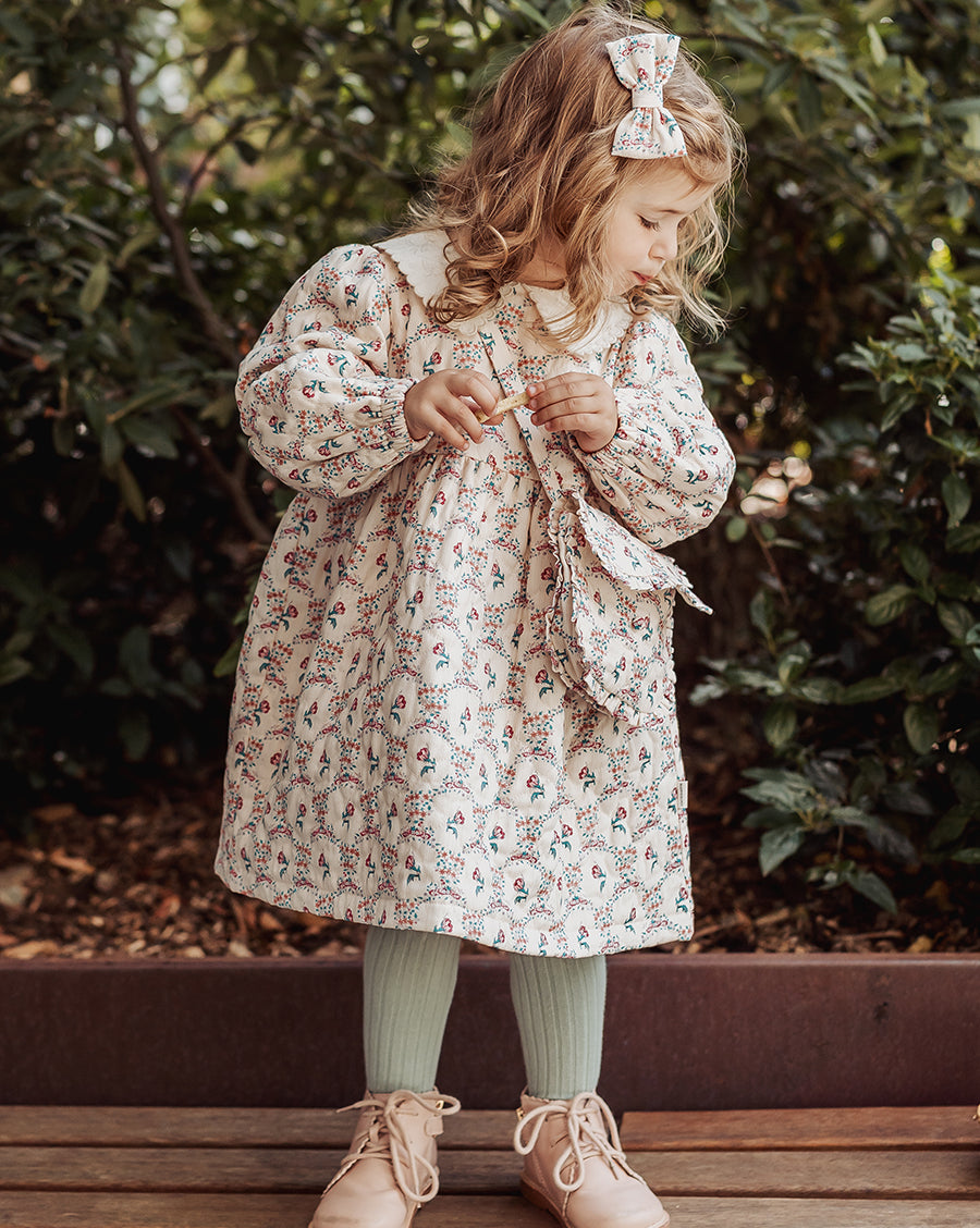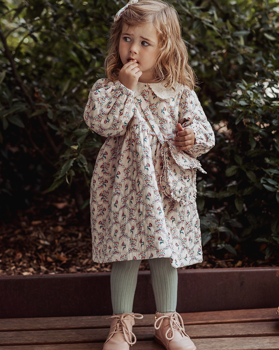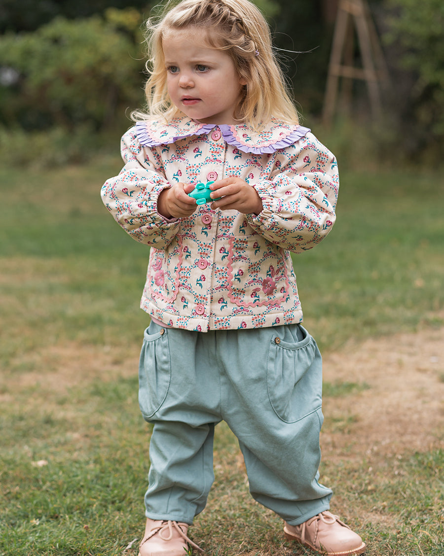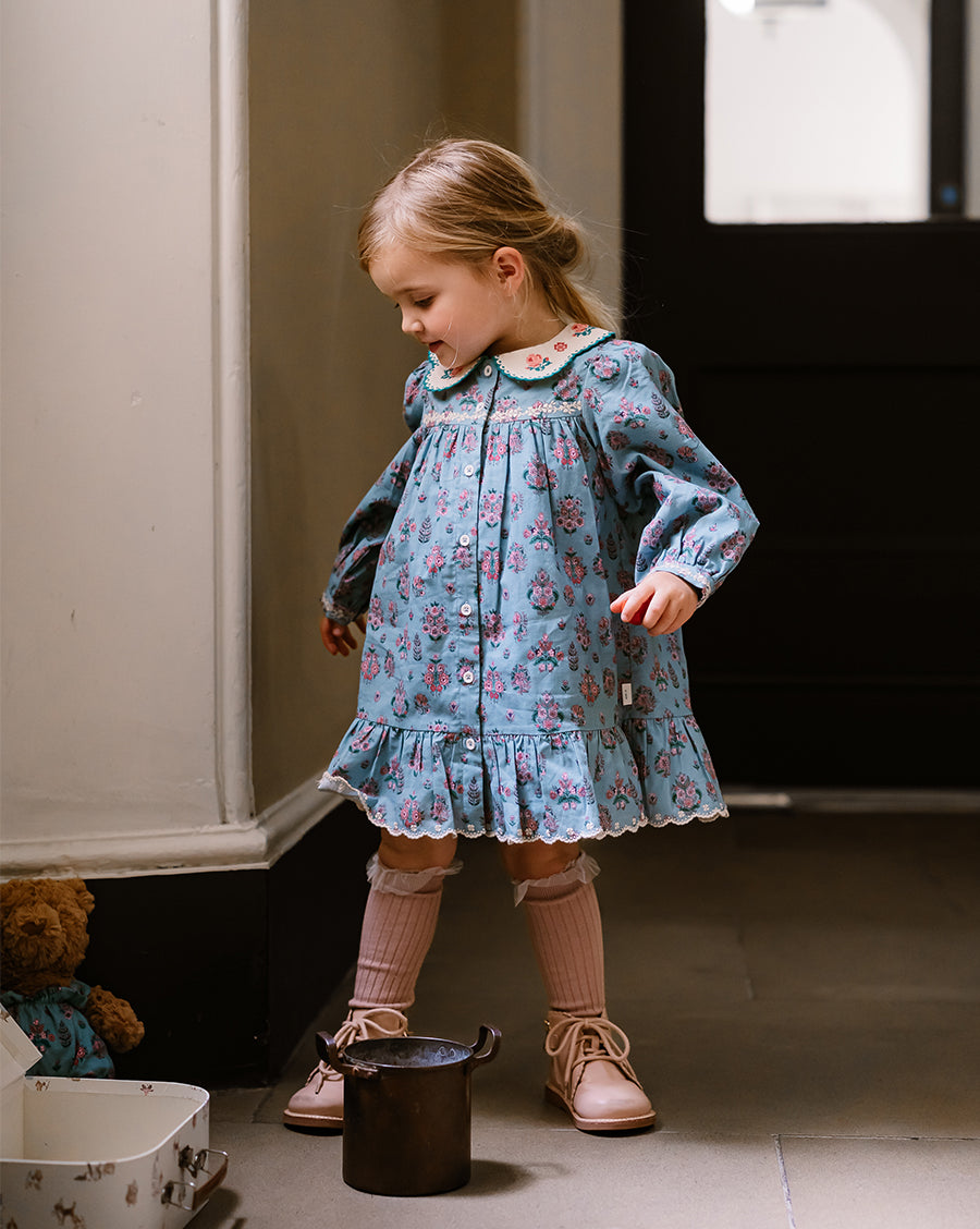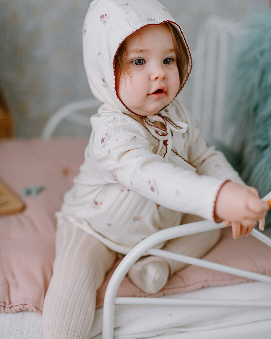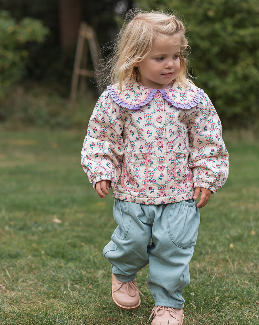Inspired by English gardens, our florals are hand-drawn and designed in-house, then carefully printed on breathable and luxurious organic cotton. Each piece brings together artful detail, gentle comfort, and small-batch craftsmanship - made to be loved, worn, and passed on.