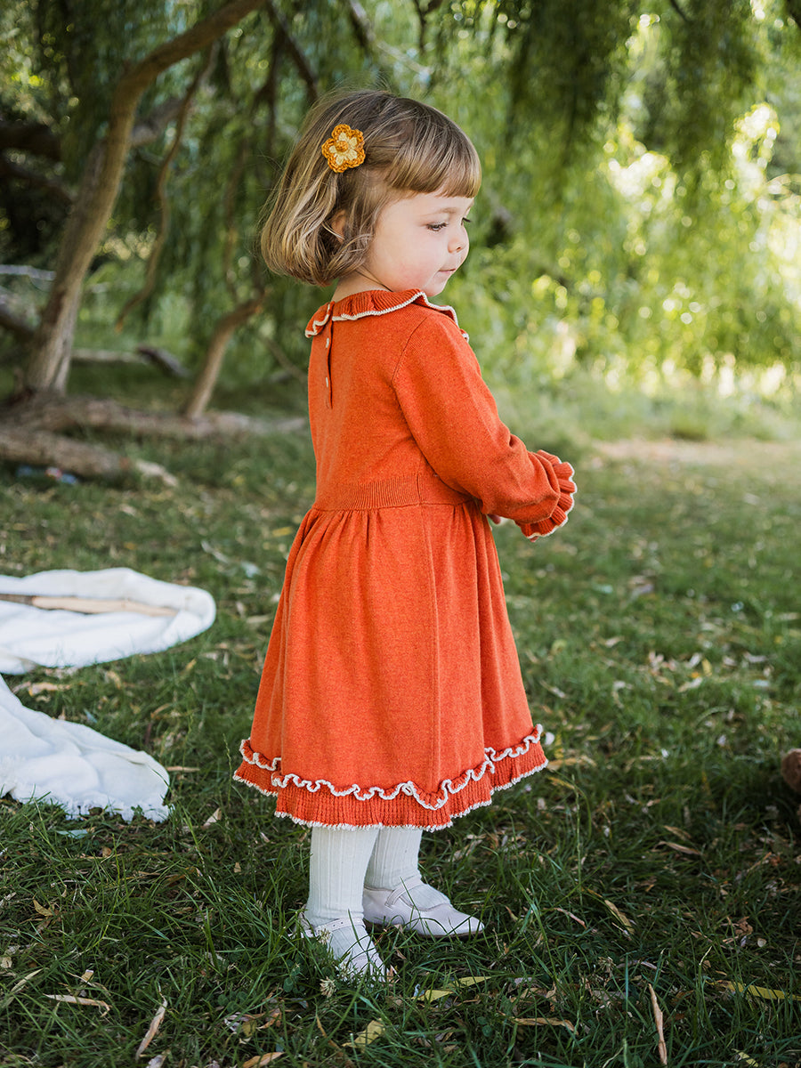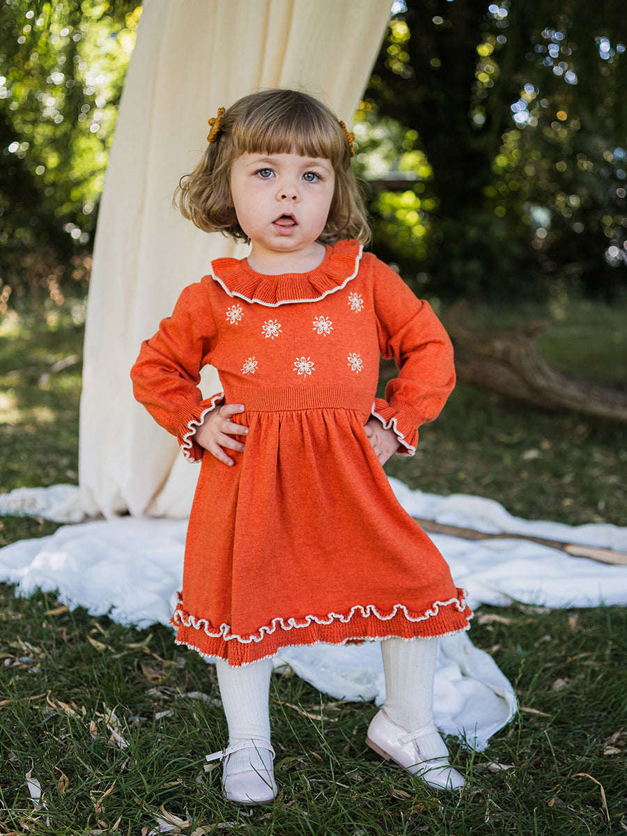 Marie Hand-Embroidered Knitted Dress, Dawn Orange