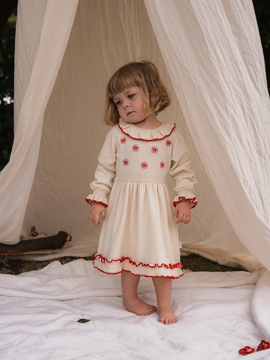 Marie Hand-Embroidered Knitted Dress, Crème Brulee