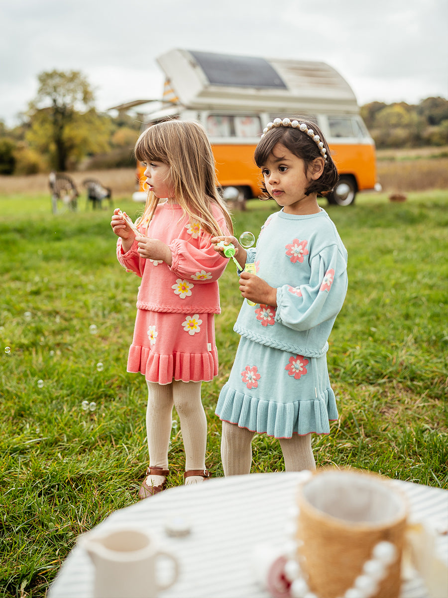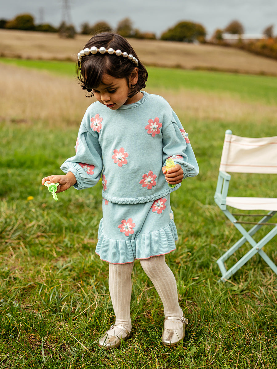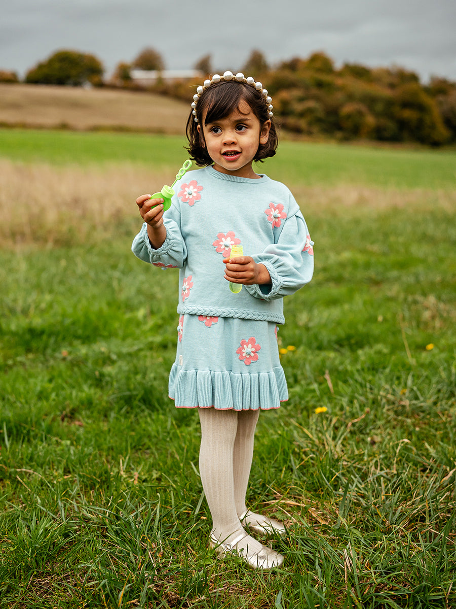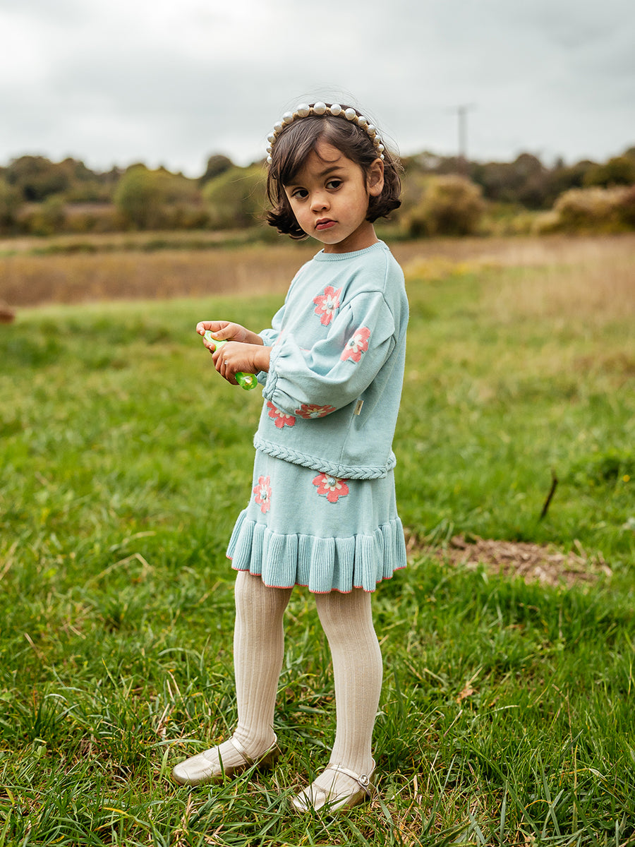 Kent Floral Knitted Skirt, Aqua Blue