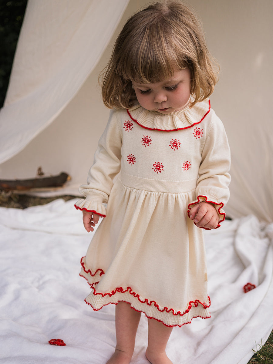 Marie Hand-Embroidered Knitted Dress, Crème Brulee