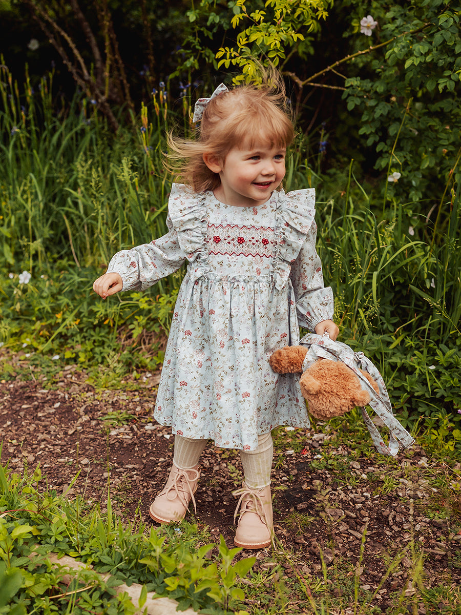 Abigail Hand-Smocked Dress, Wisteria Garden, Blue