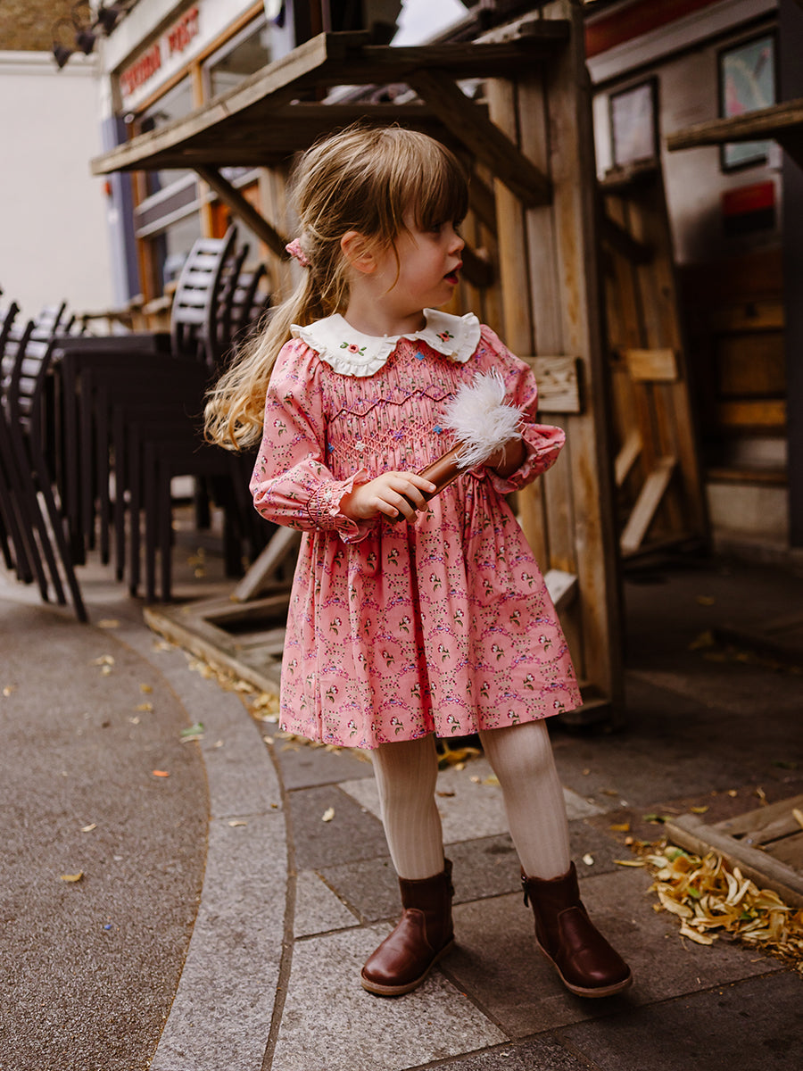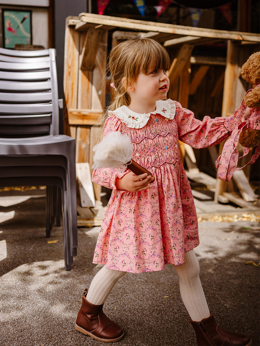 Izzy Hand-Smocking Dress, Vintage Bouquet, Rose