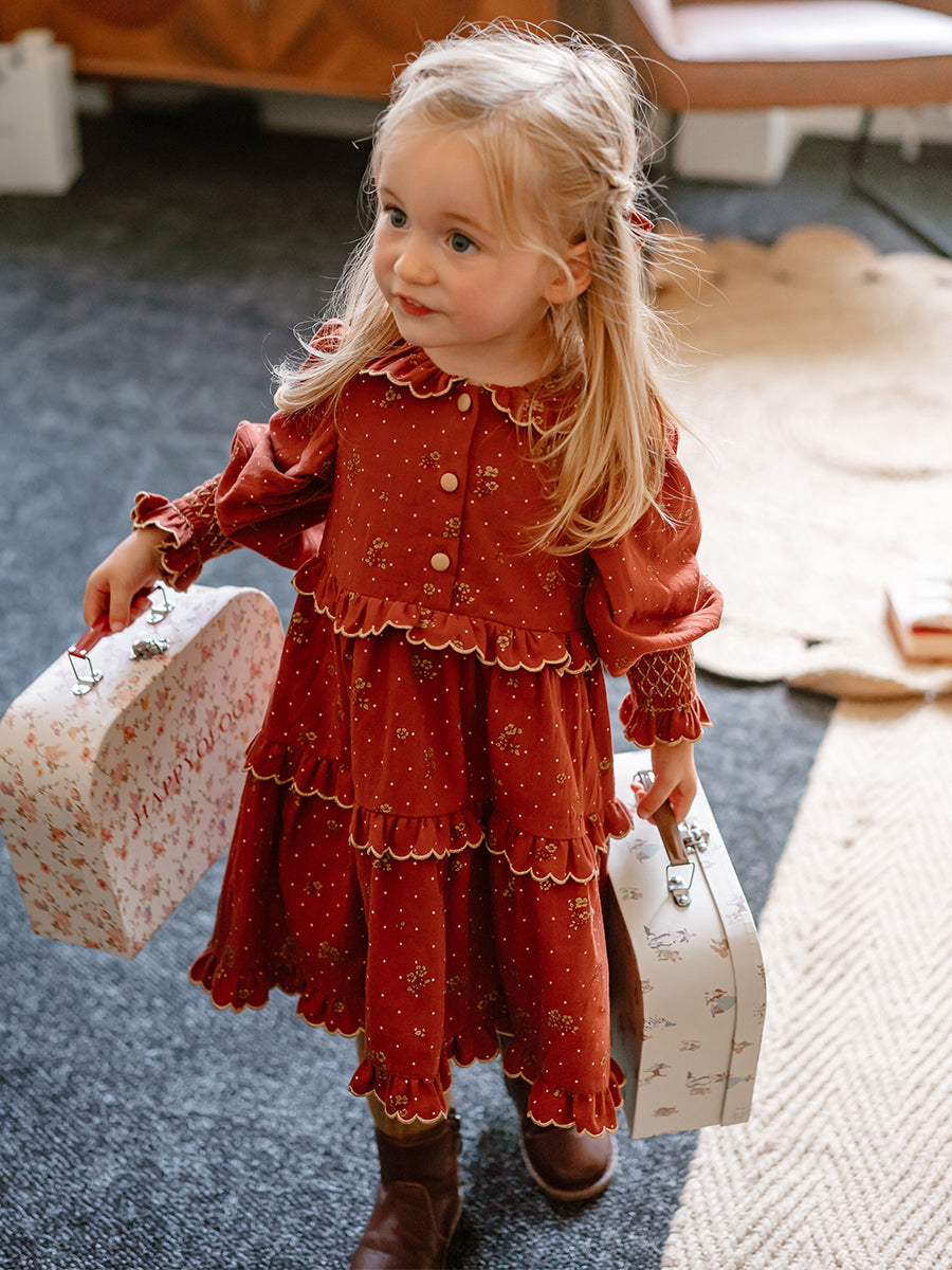 Celine Smocking Dress, Wildflower Polka, Burgundy