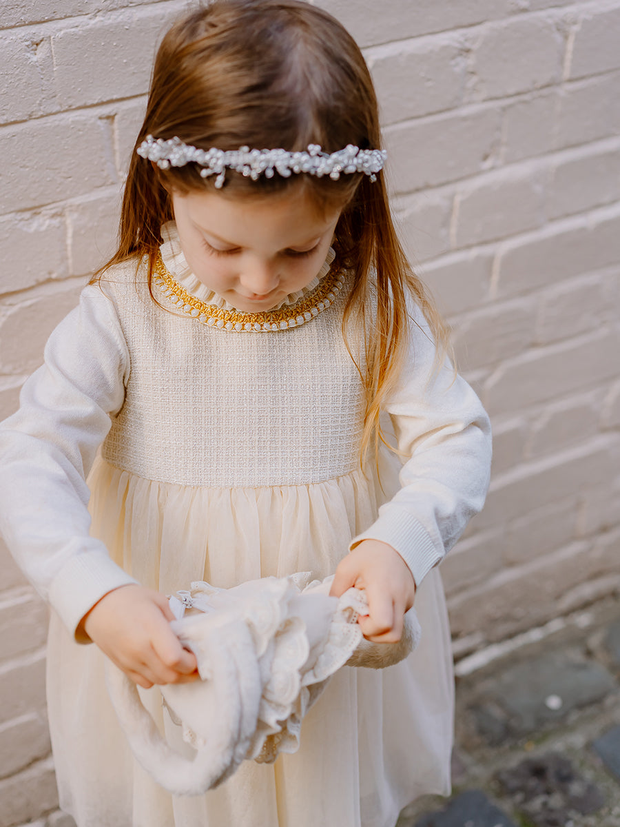 Abigail Hand-Smocked Dress, Farnese Garden, Cream