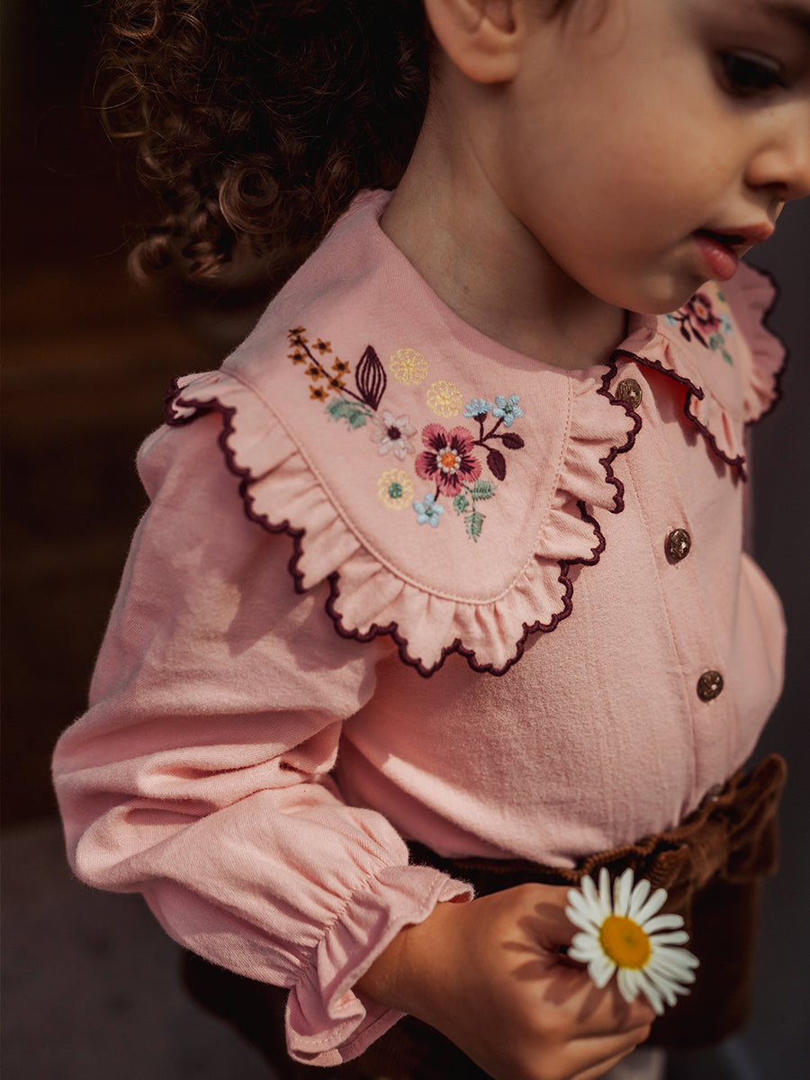 Jessielle Ankle Socks with Floral Ruffle, Misty Pink & Caramel