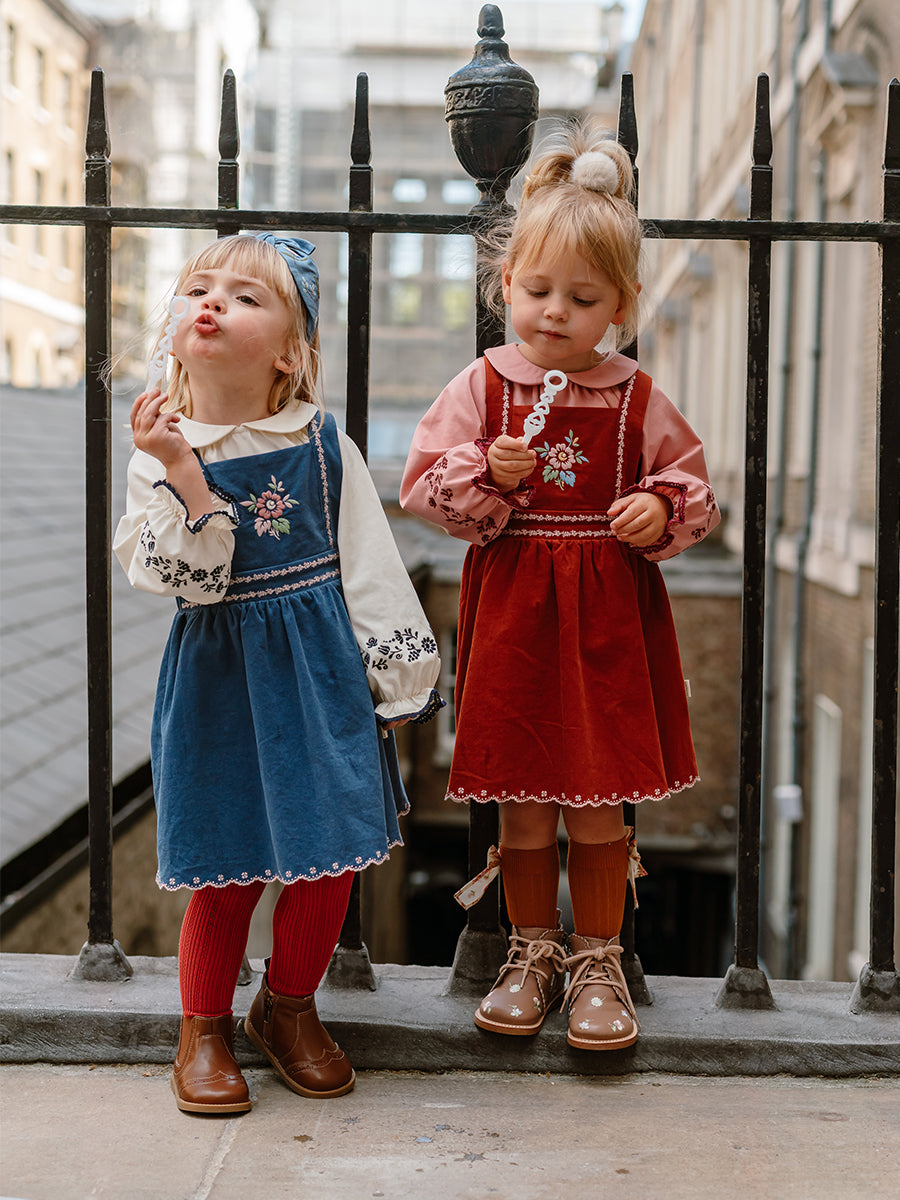 Carey Corduroy Dungaree Dress, Grapefruit Orange