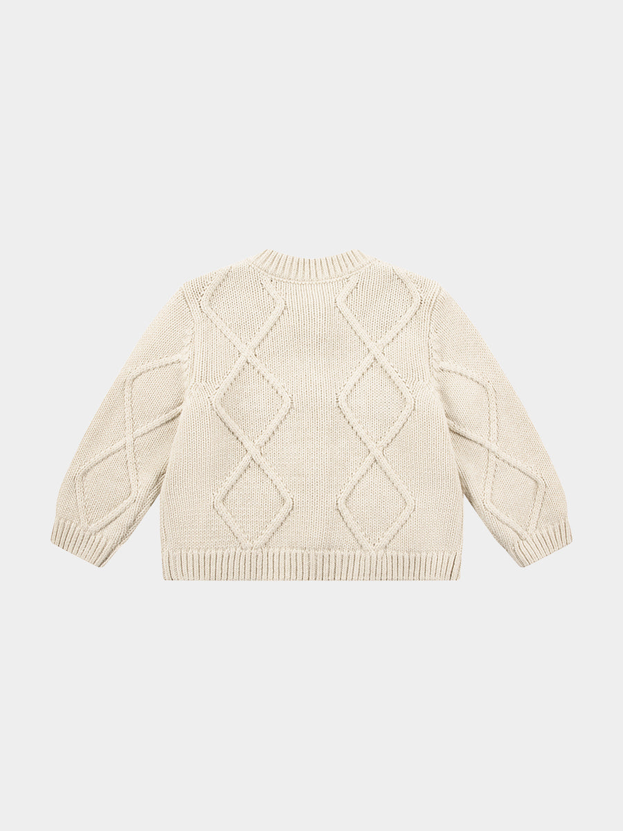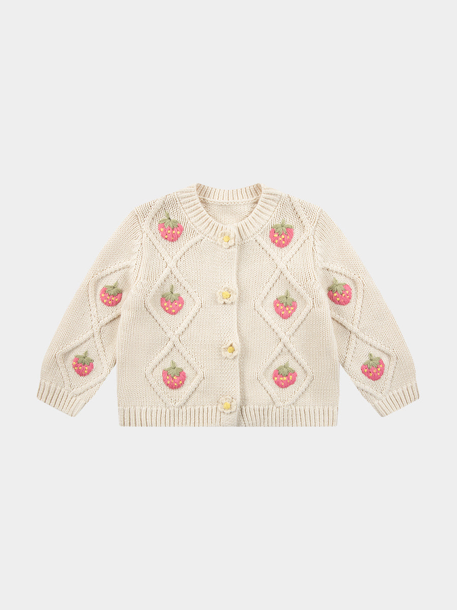 Strawberry Hand-Embroidered Cardigan, Crème Brulee