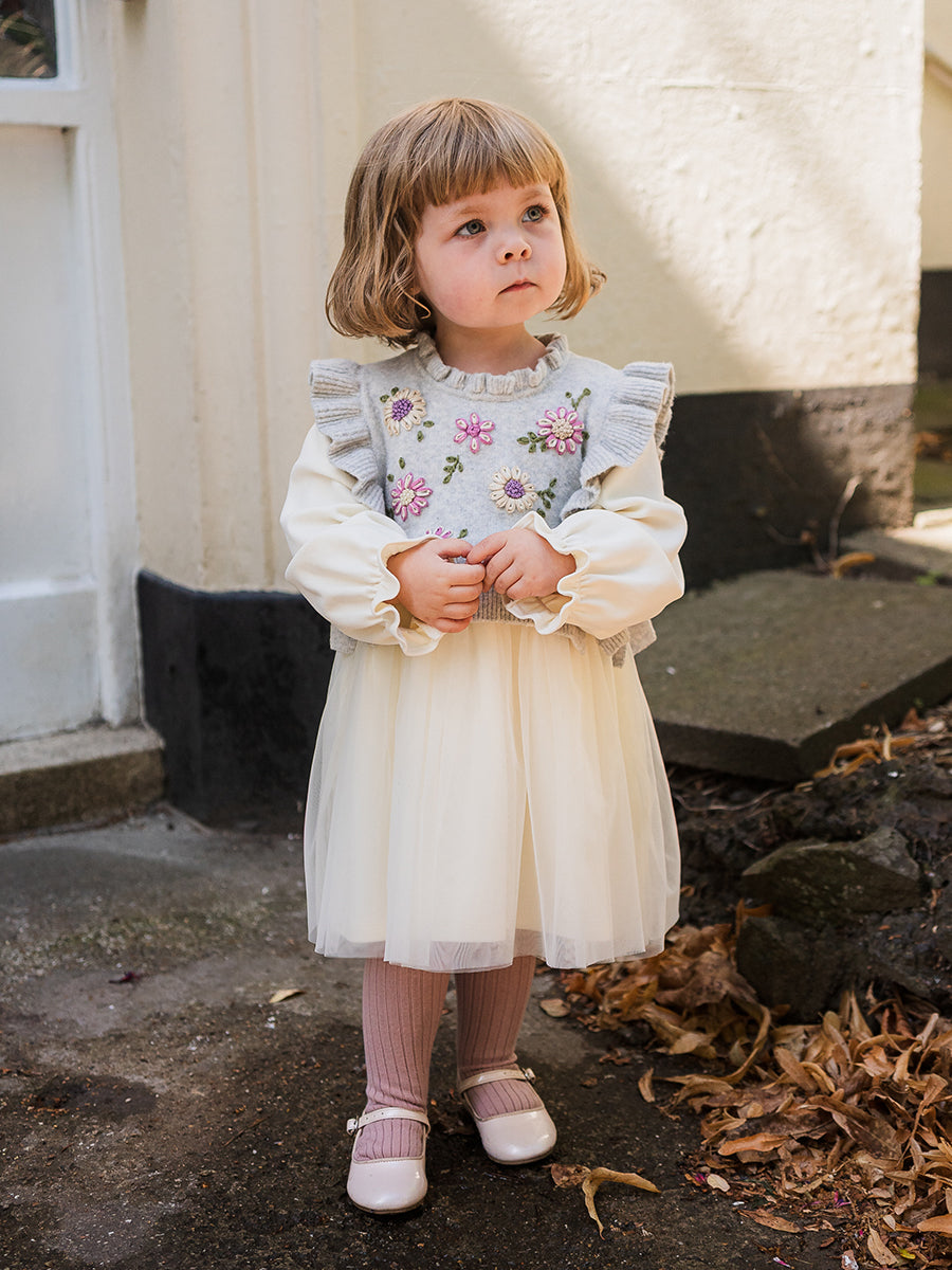 Leila Hand-Embroidered Knitted Vest, Cloudy Grey