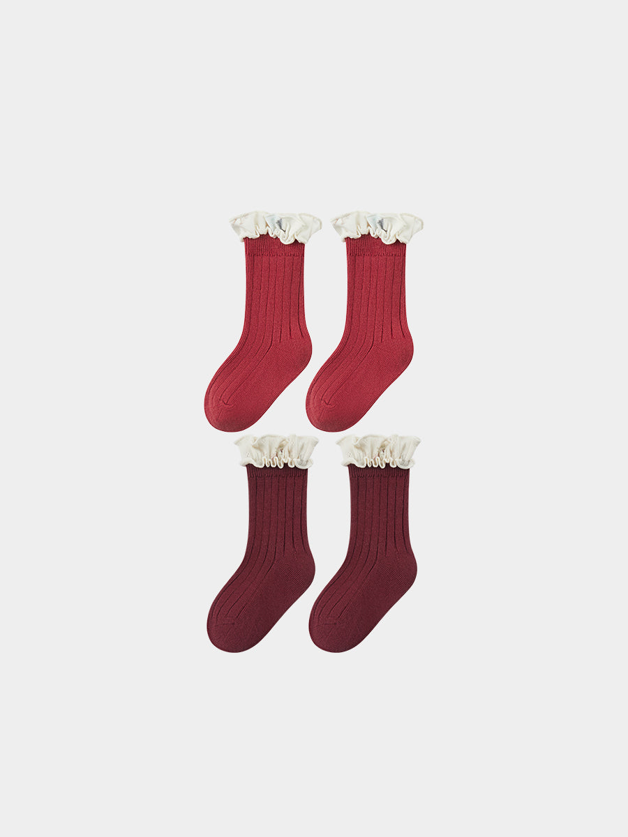 Jessielle Ankle Socks with Floral Ruffle, Pomegranate Red & Princess Red