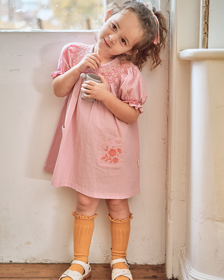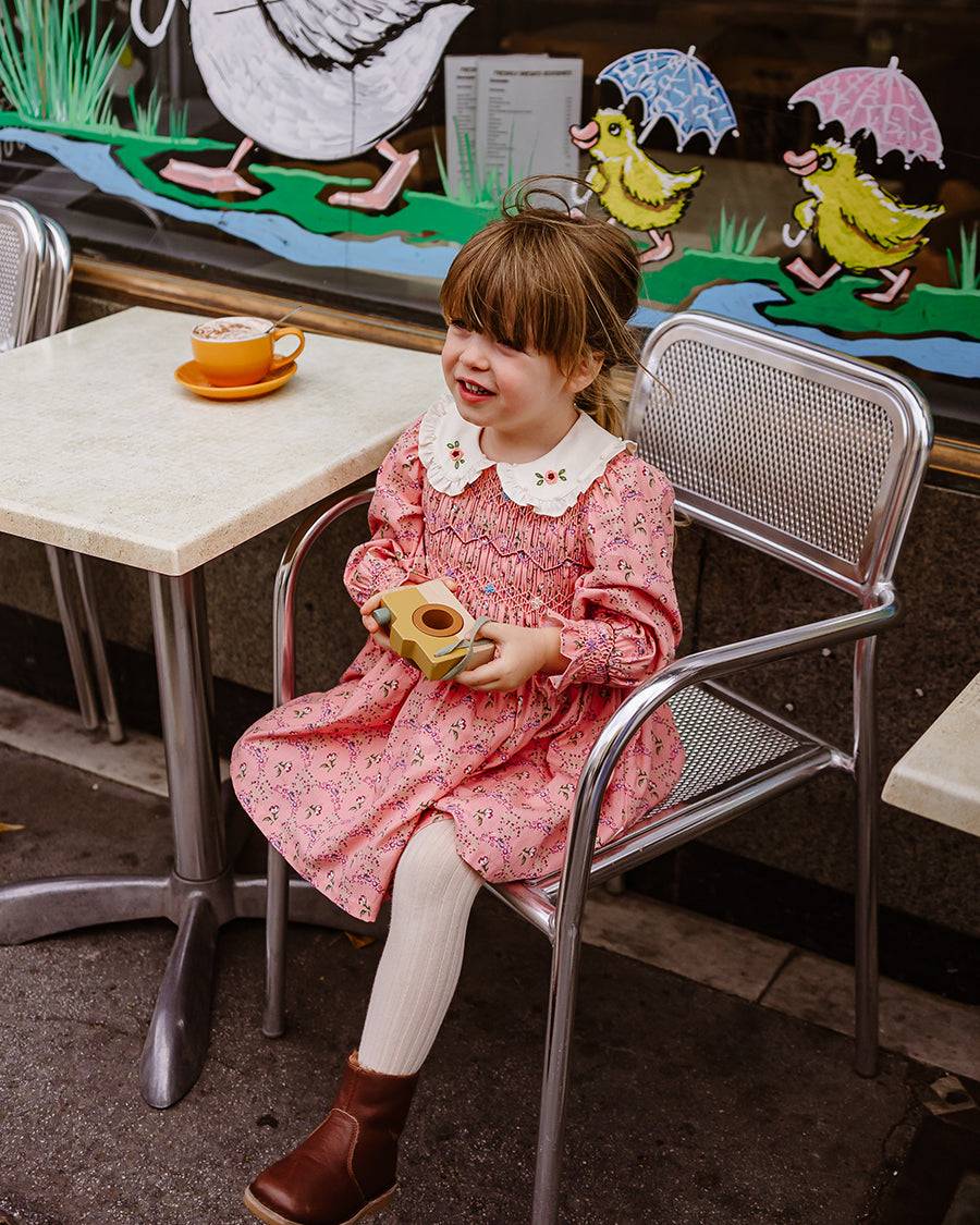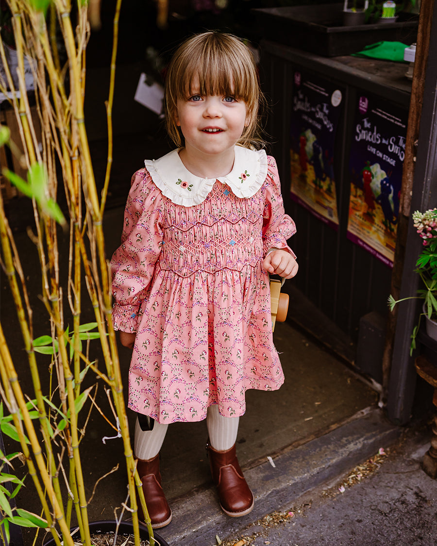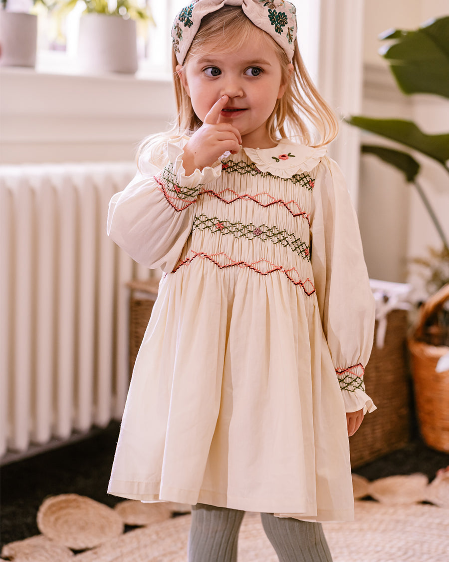 Our handmade pieces are lovingly brought to life by our in-house artisans — hand-smocked, hand-embroidered, delicately beaded and finished with beautiful attention to detail. Made in small quantities, each style is a little work of art, designed to be worn, treasured, and passed on.