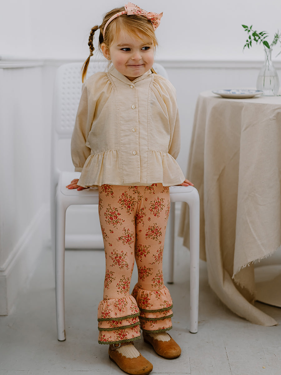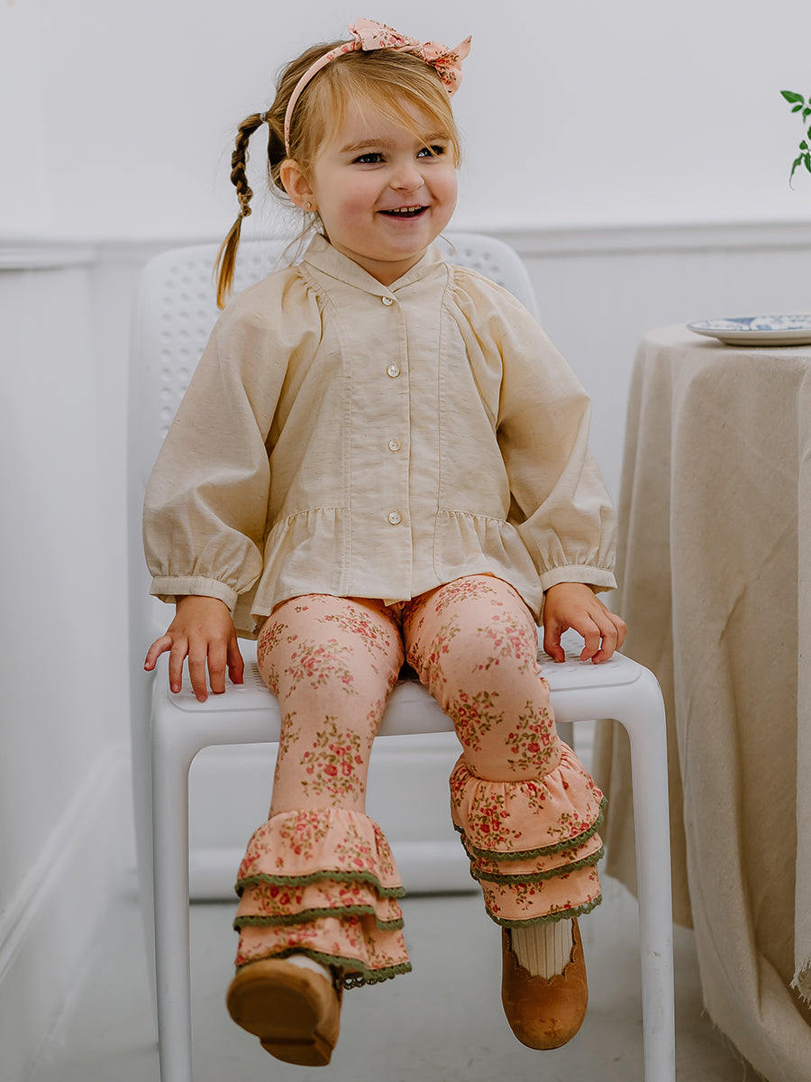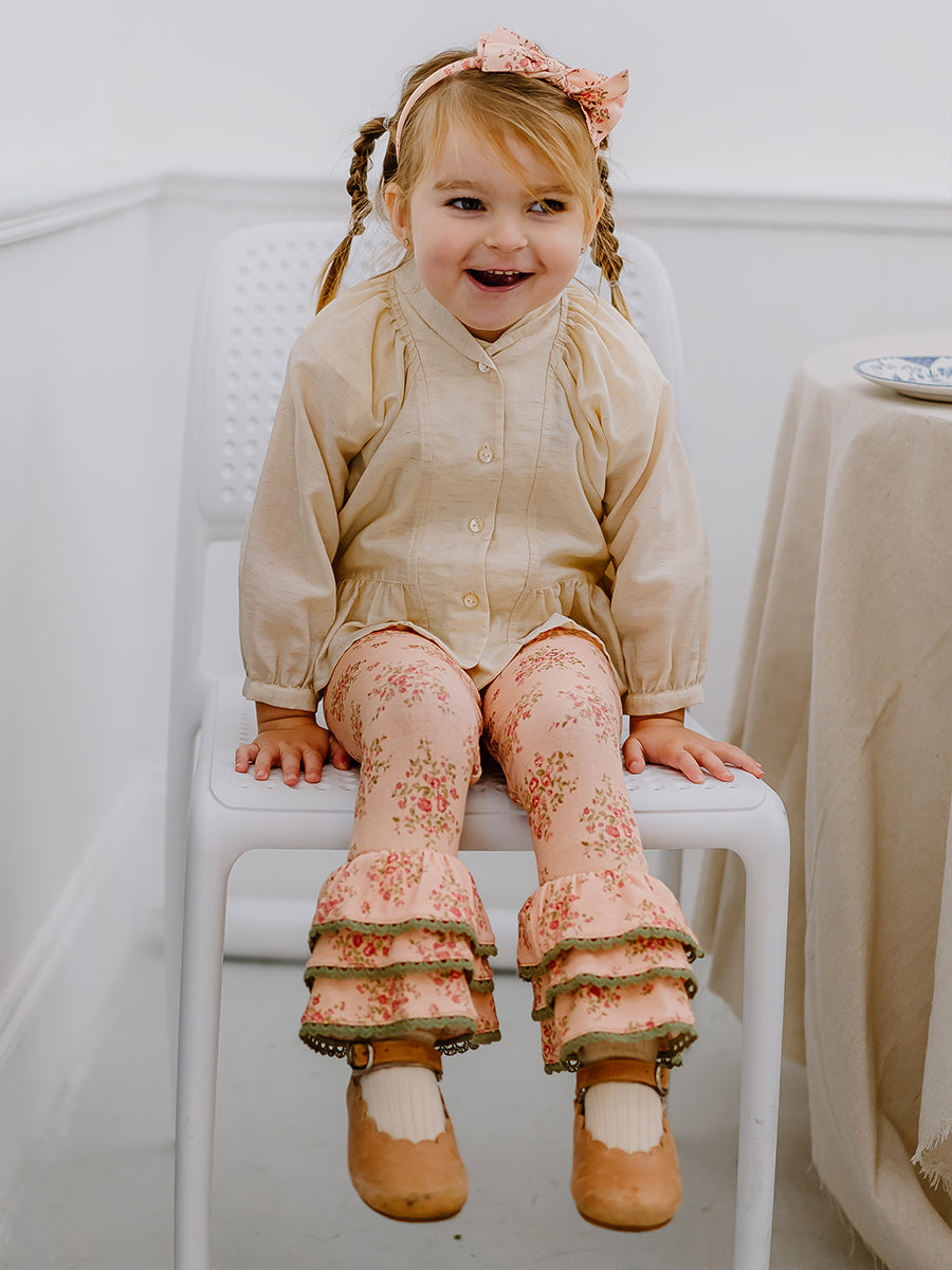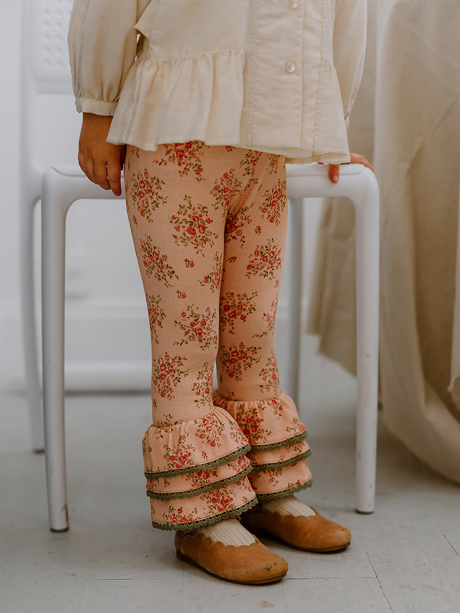 Lincoln Ruffle Leggings, Rose Bouquet, Blush