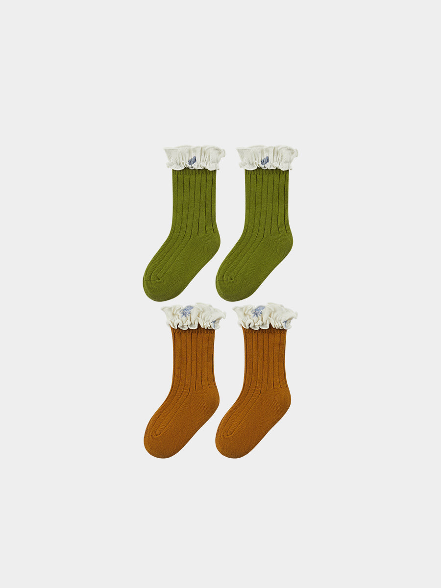 Jessielle Ankle Socks with Floral Ruffle, Avocado Green & Caramel