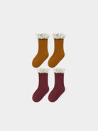 Jessielle Ankle Socks with Floral Ruffle, Pomegranate Red & Caramel