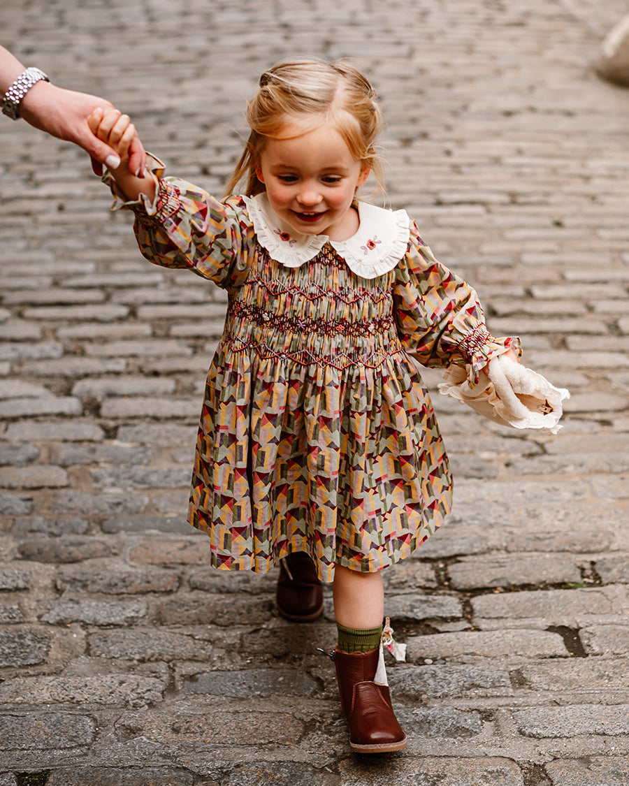 Izzy Hand-Smocking Dress, Colourful Geo, Purple