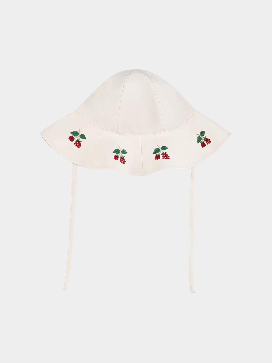 Strawberry Hand-Embroidered Bonnet, Crème Brulee