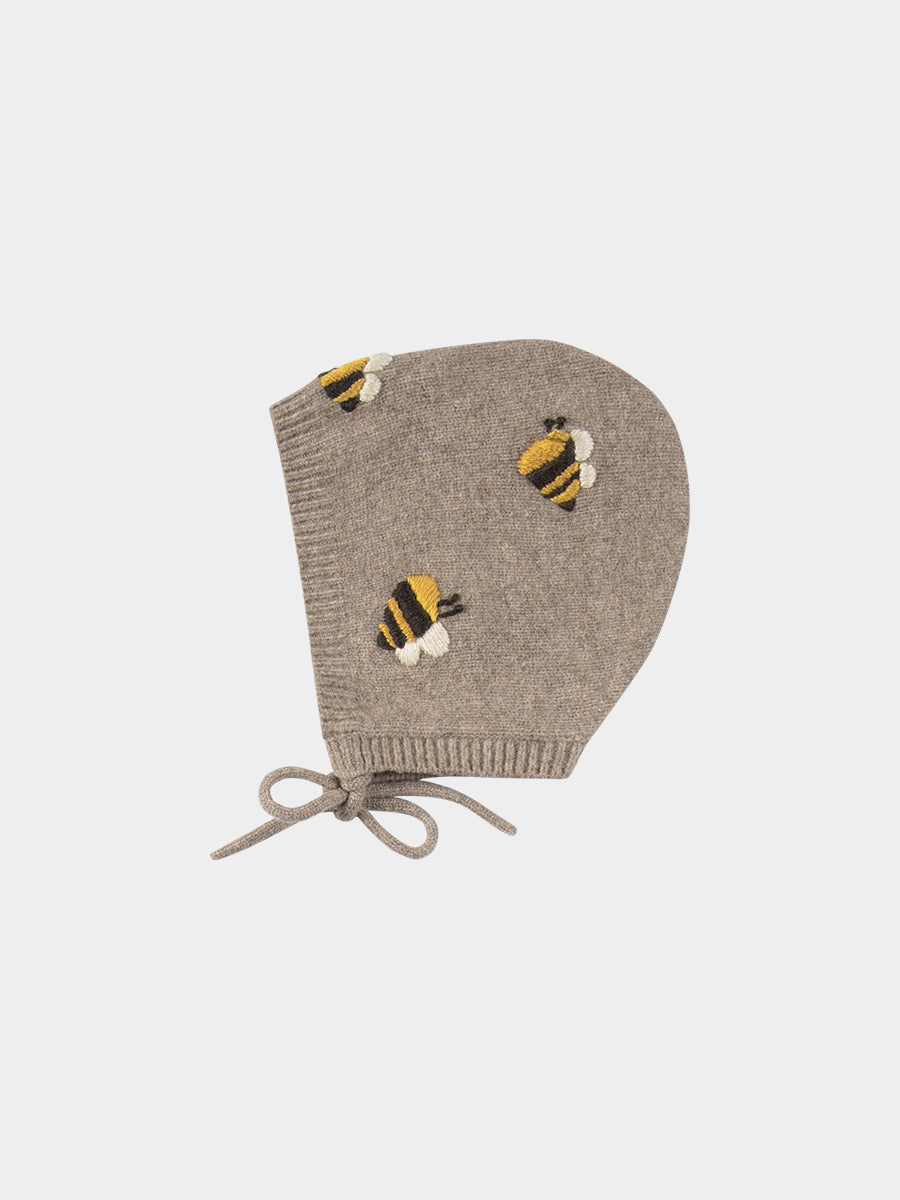 Quinn Hand-Embroidered Knitted Bonnet, Smoky Brown