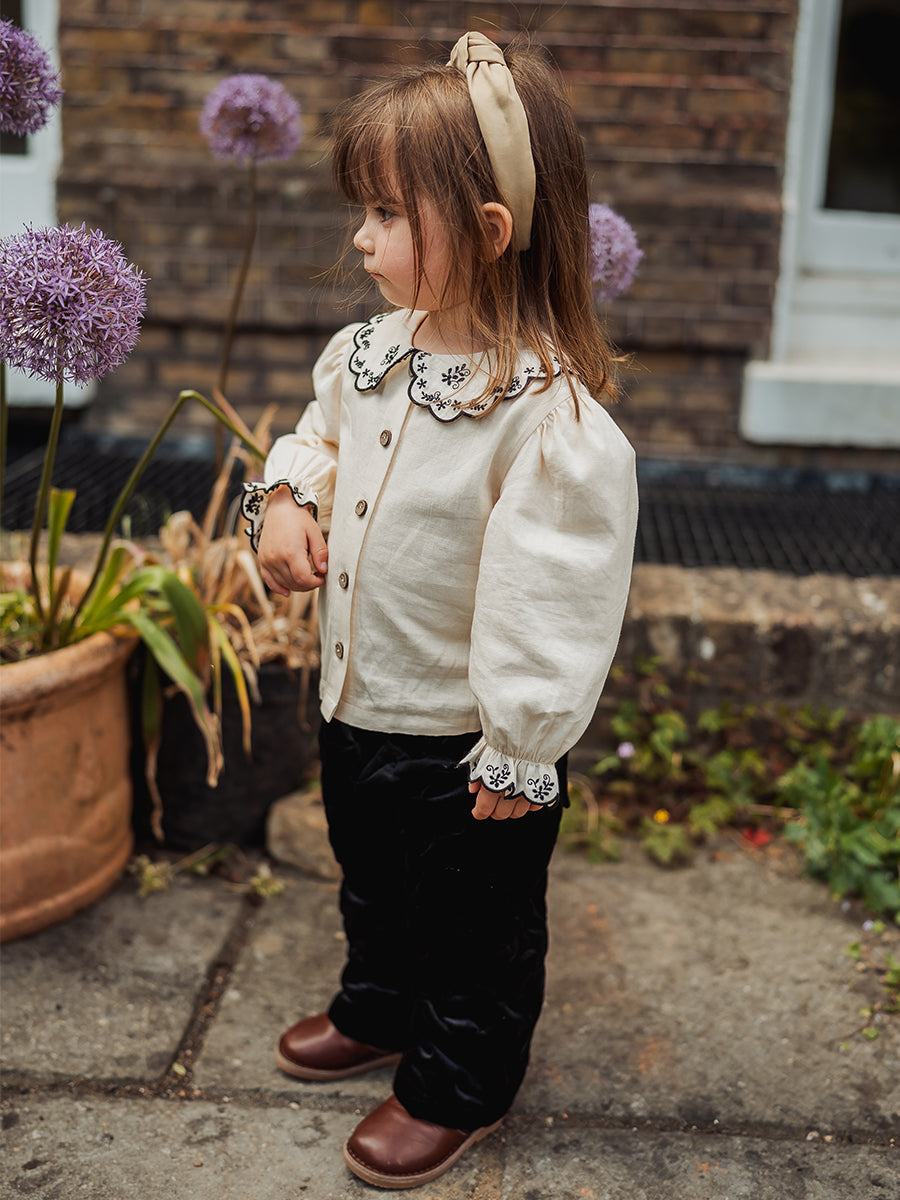 Camila Quilted Trousers, Strawberry Flower Field, White