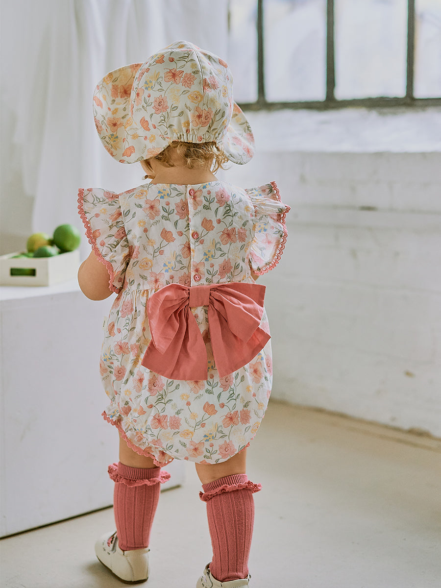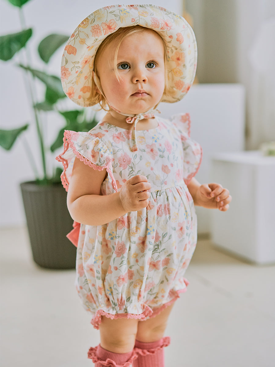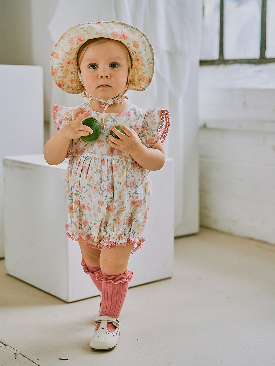 Jessielle Ankle Socks with Floral Ruffle, Misty Pink & Crème Brulee