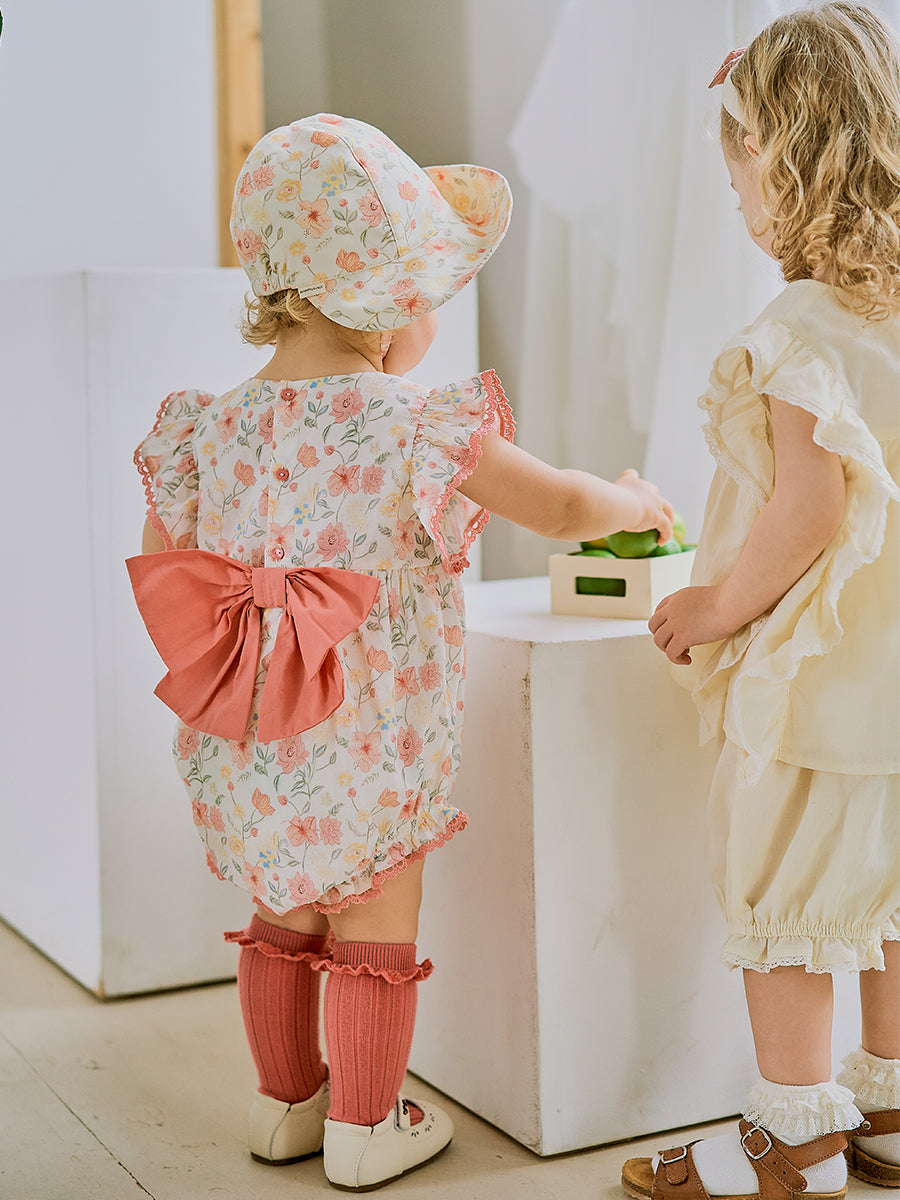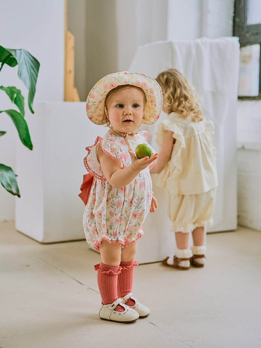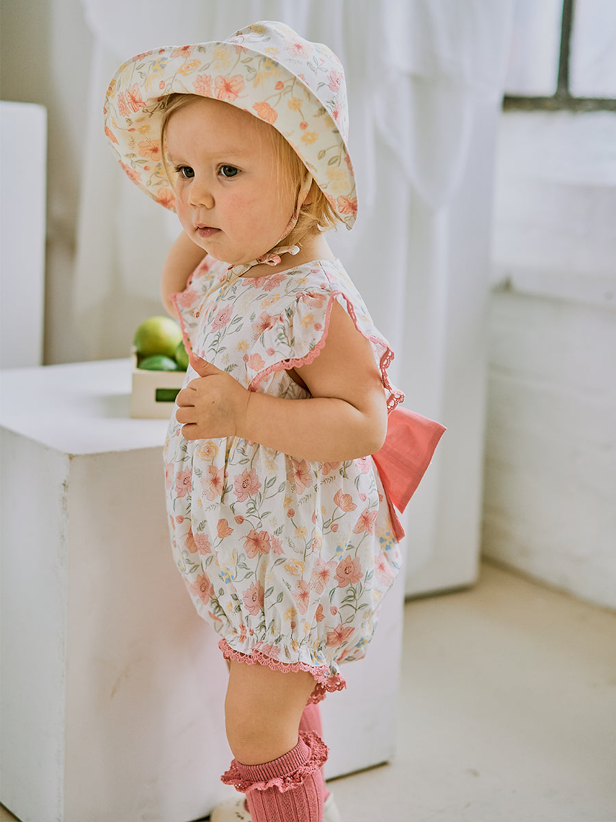 Jessielle Ankle Socks with Floral Ruffle, Misty Pink & Crème Brulee