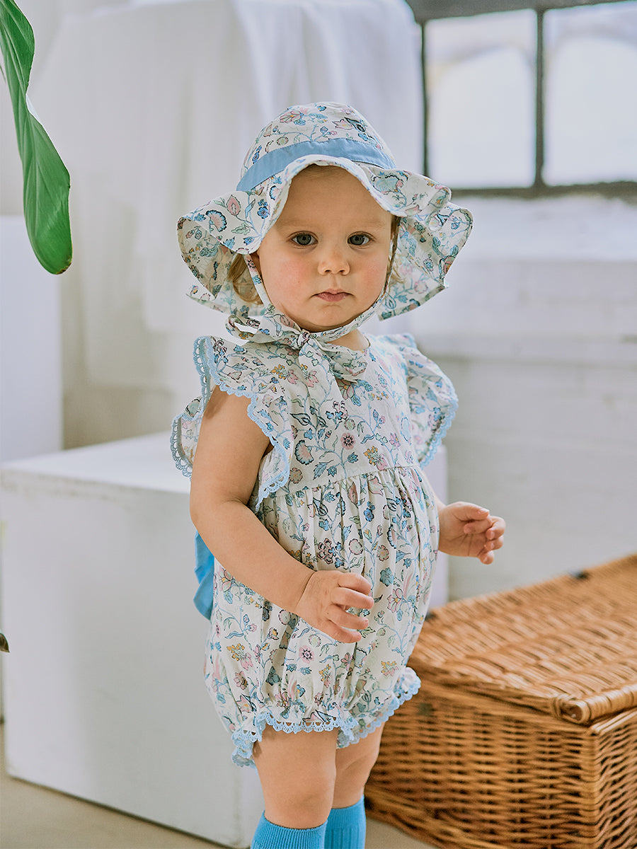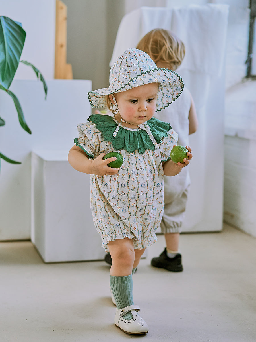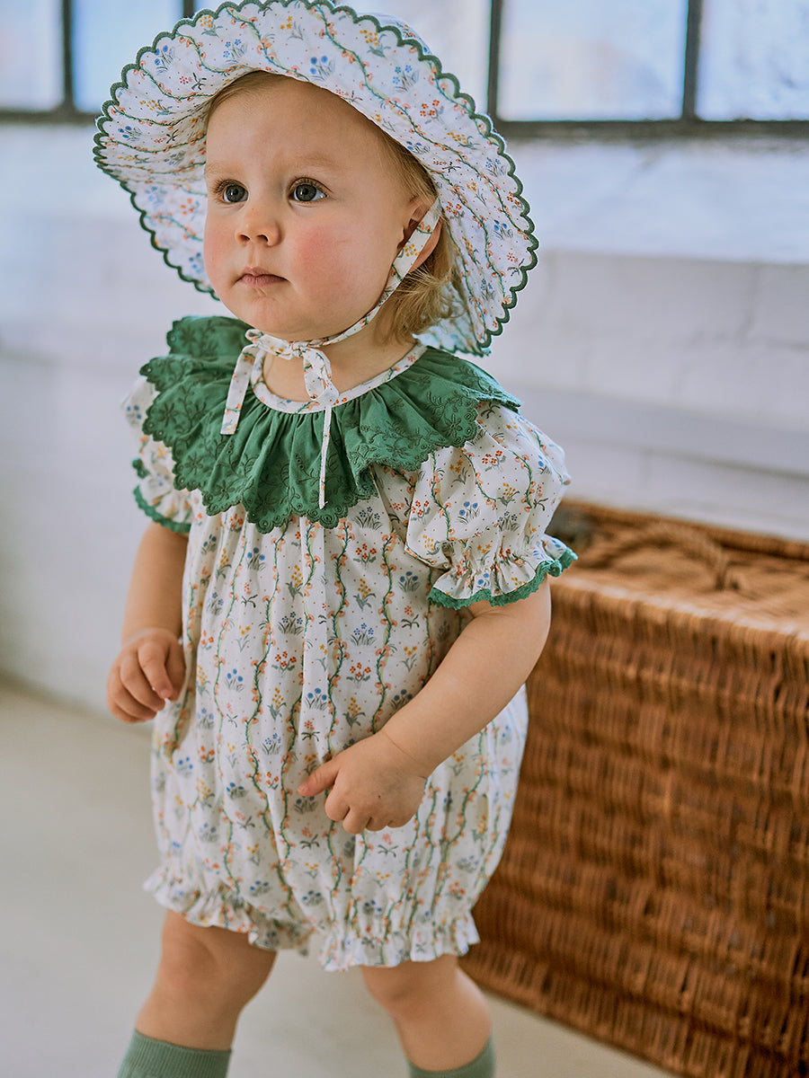 Quinn Hand-Embroidered Knitted Bonnet, Almond White