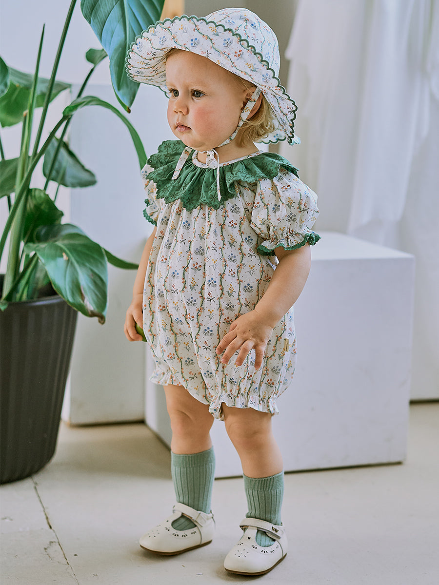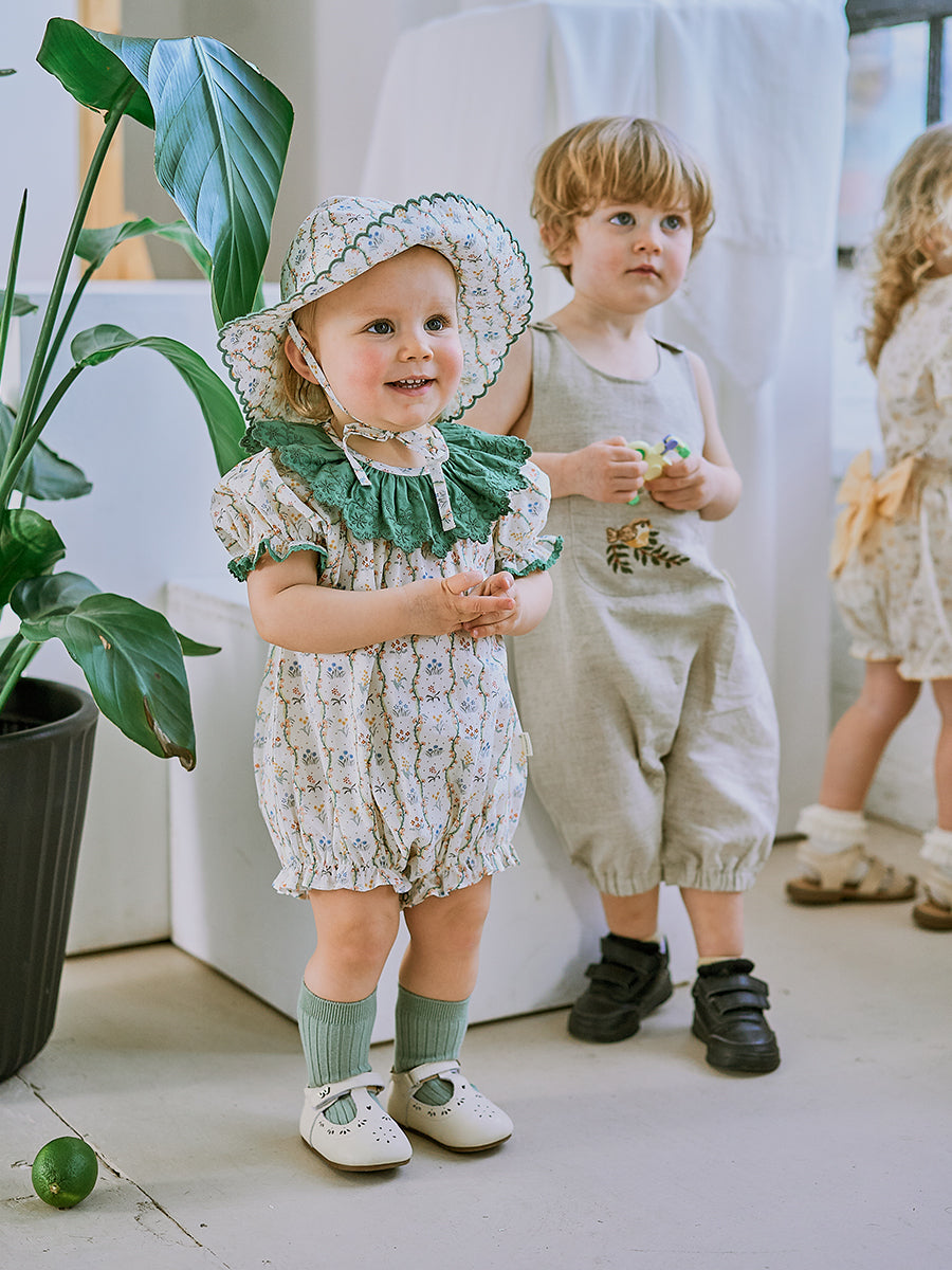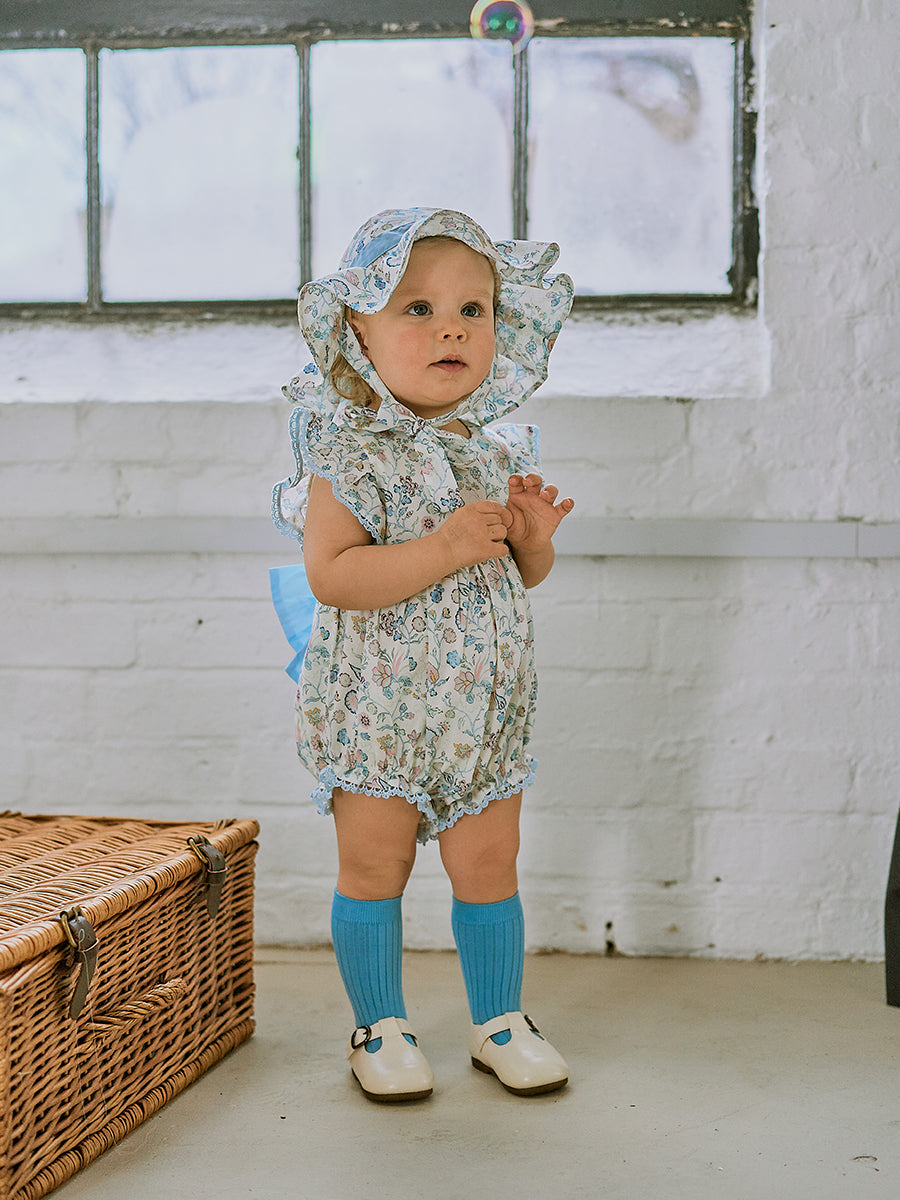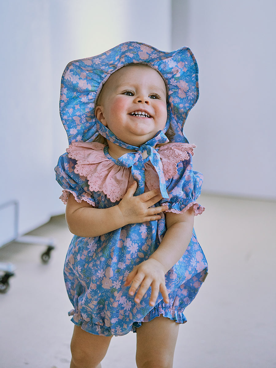 Quinn Hand-Embroidered Knitted Bonnet, Almond White