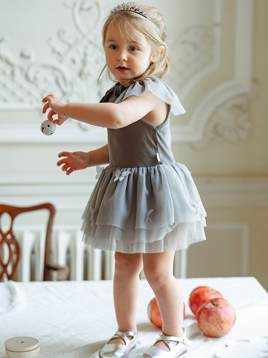 Whitby Tulle Dress & Collar Set, Misty Grey