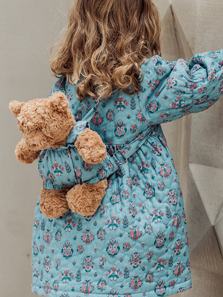 Teddy Bear Overall Shorts, Leela Botanic, Teal