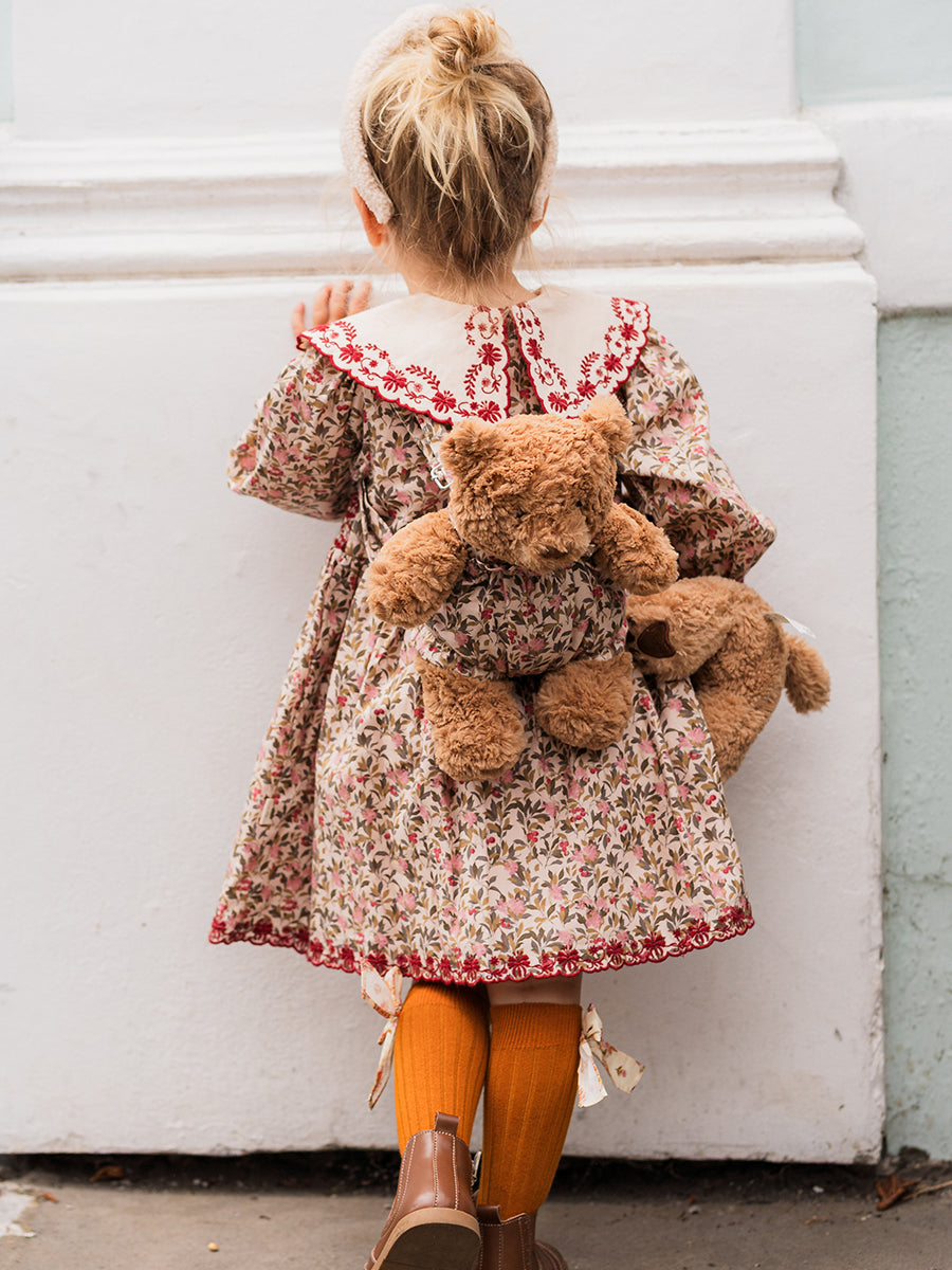 Teddy Bear Overall Shorts, Wildflower Polka, Burgundy