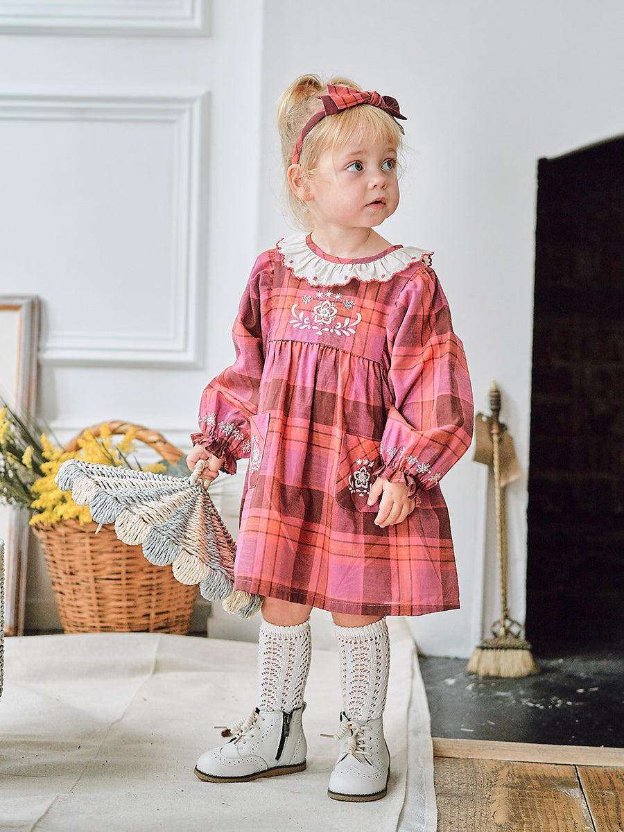 Mia Embroidered Dress, Pink Check