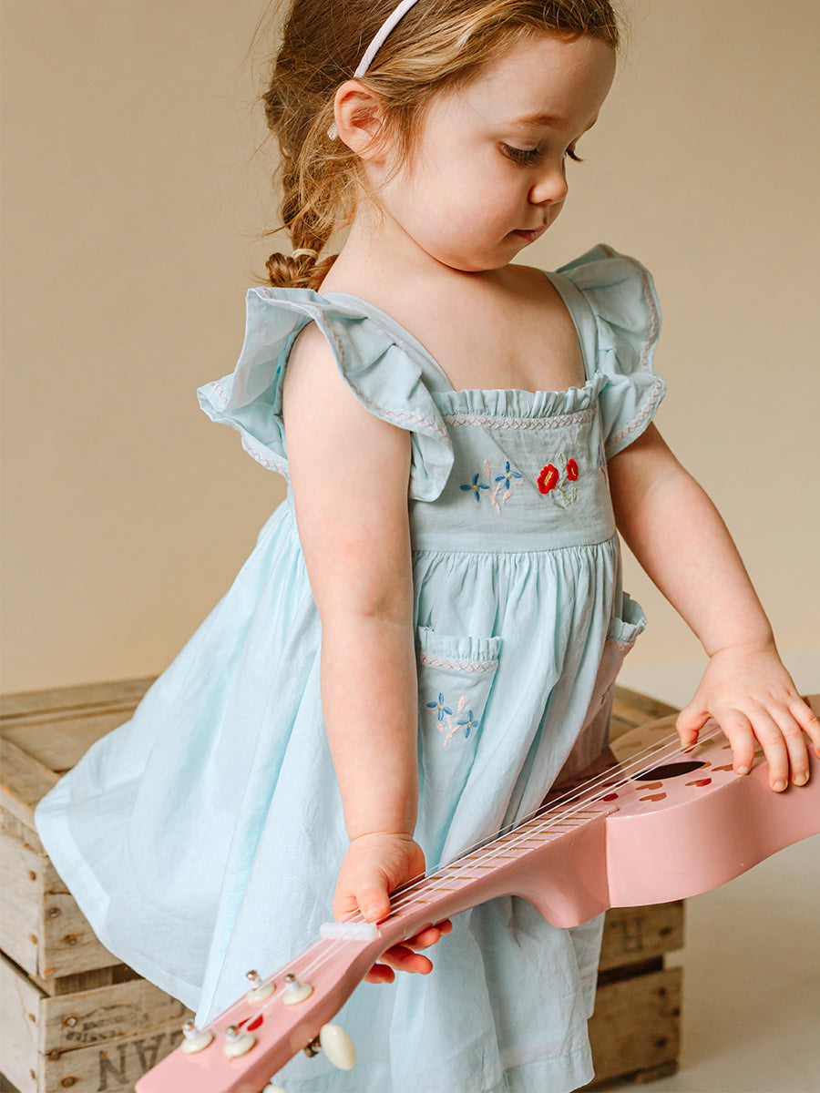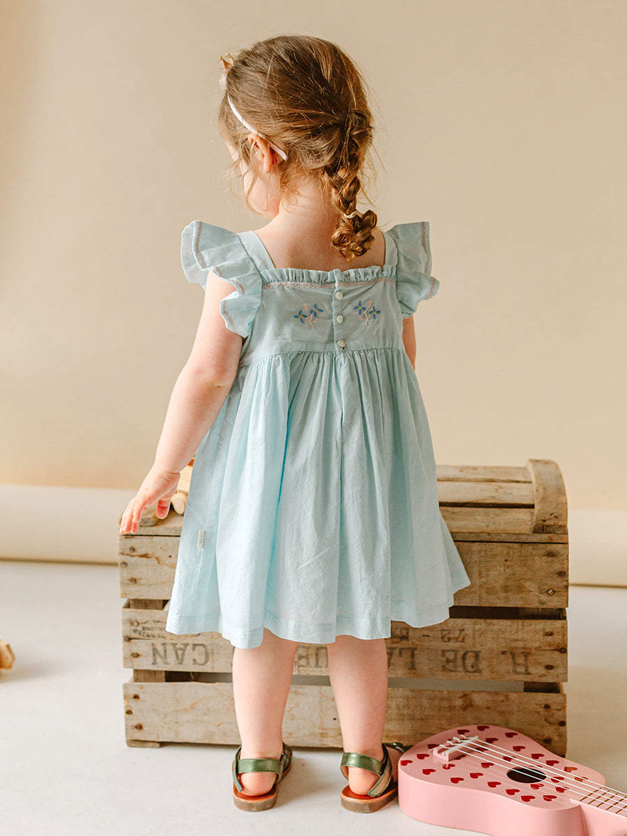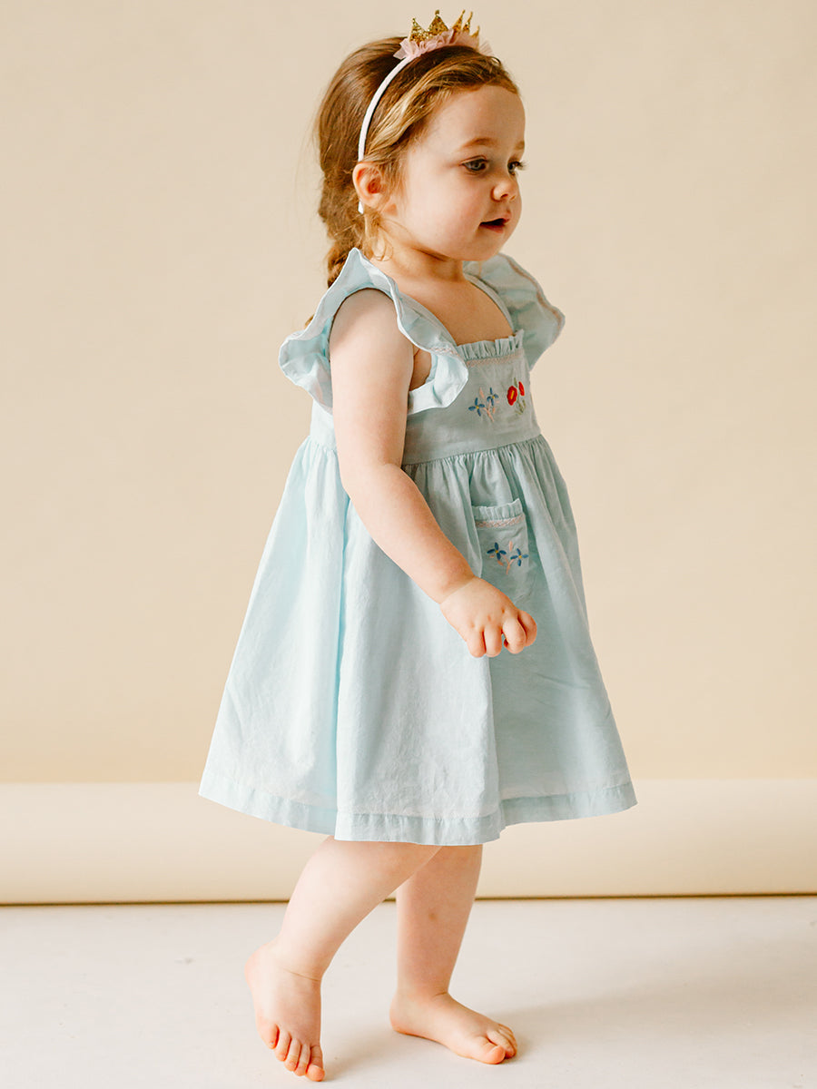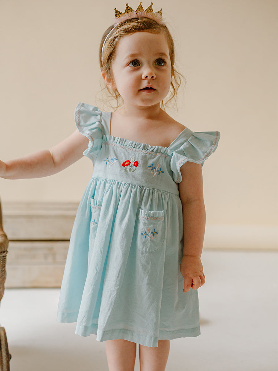 Shaftesbury Hand-Embroidered Dress, Soda Blue