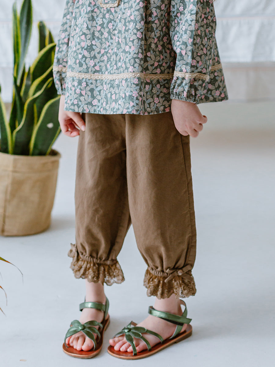 Prisha Embroidered Pants, Primrose Vine Yard Green