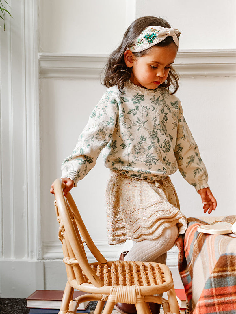 Camila Quilted Trousers, Strawberry Flower Field, White