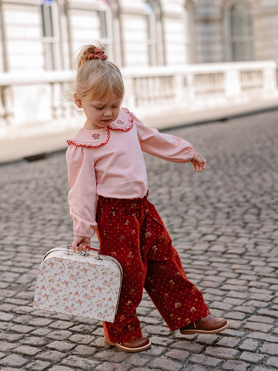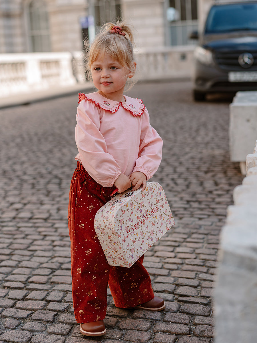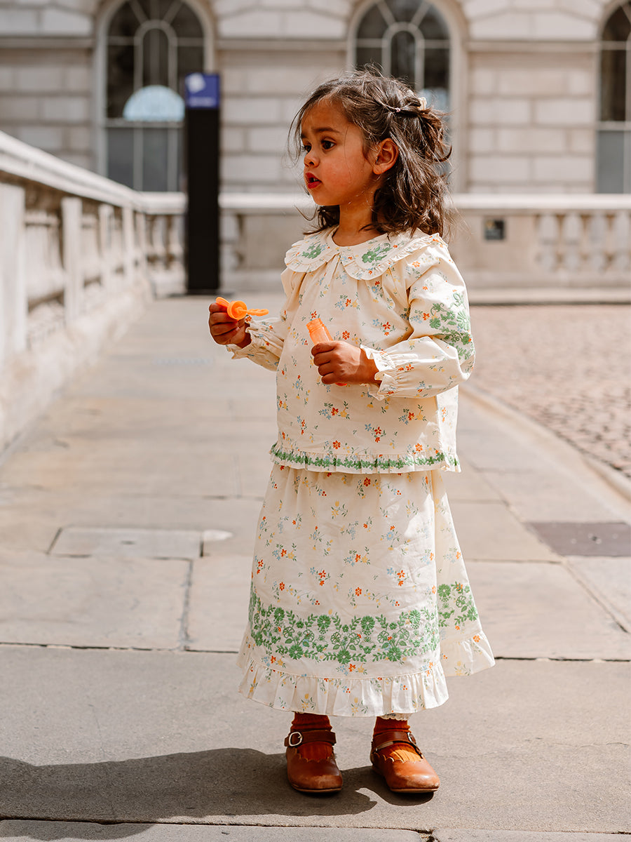 Luna Blouse and Bloomers Set, Strawberry Flower Field, Blush