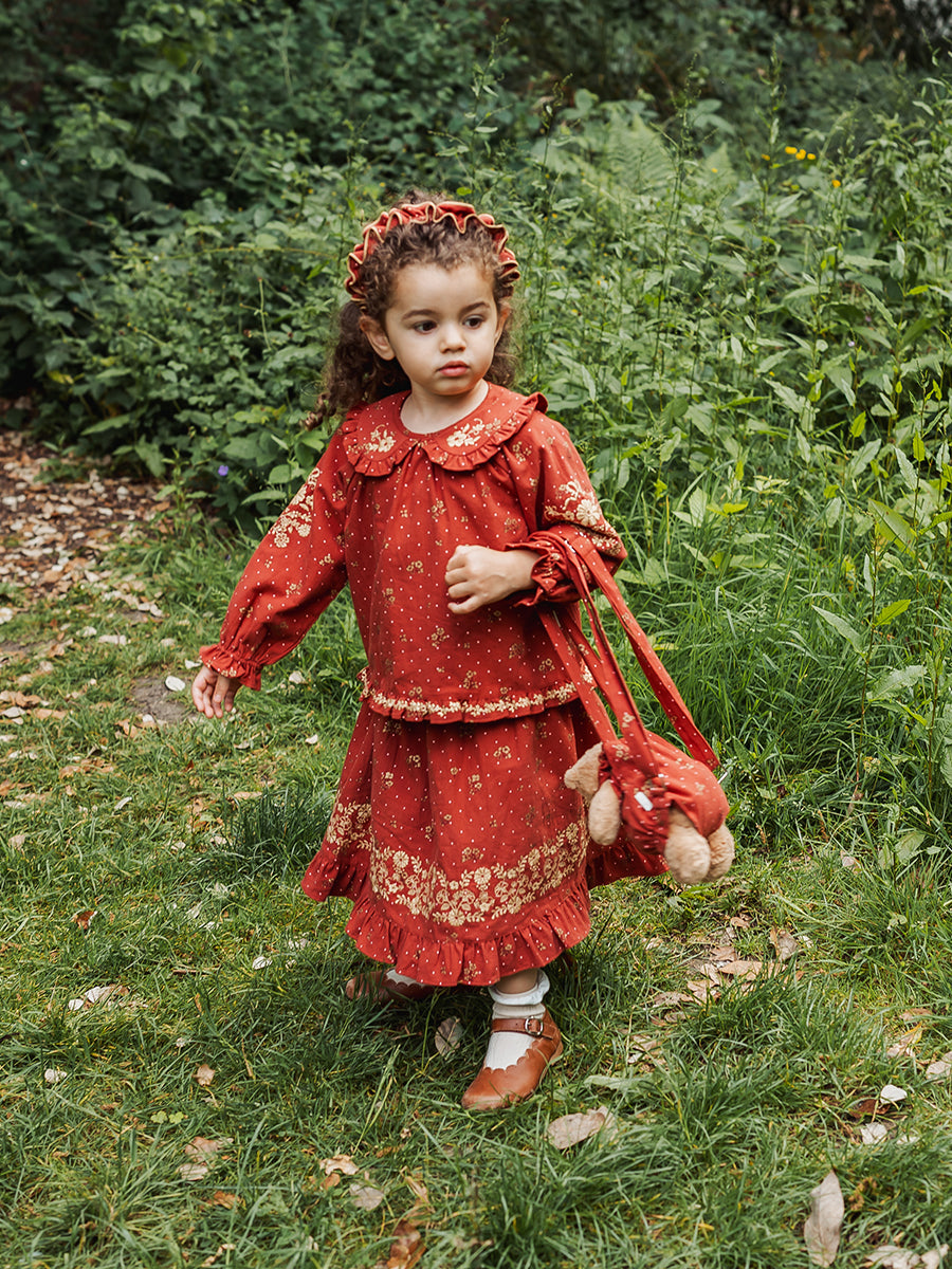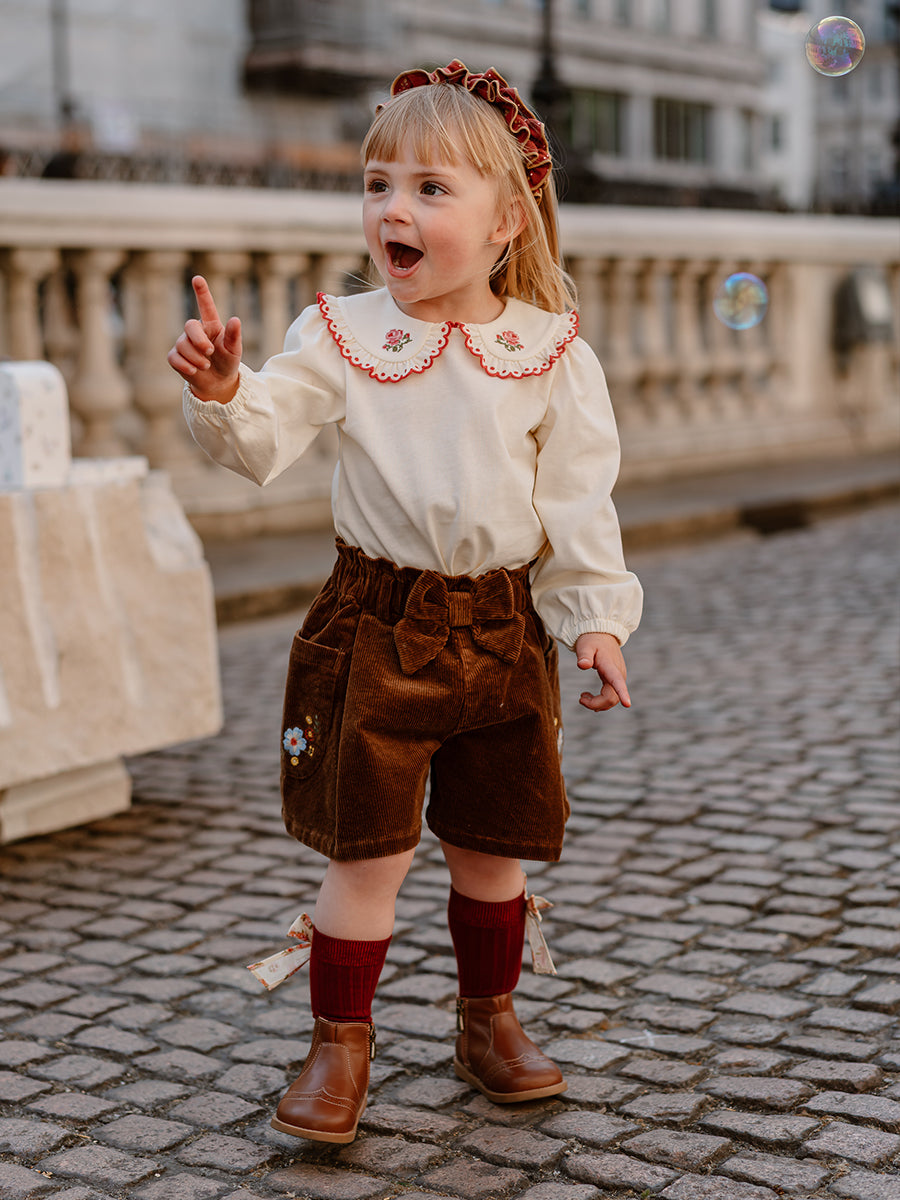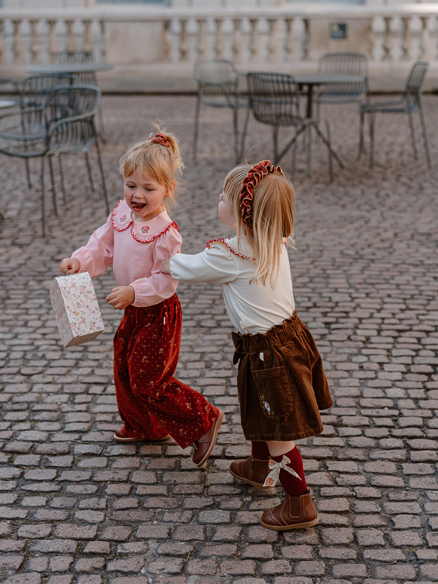 Luna Blouse and Bloomers Set, Strawberry Flower Field, Blush