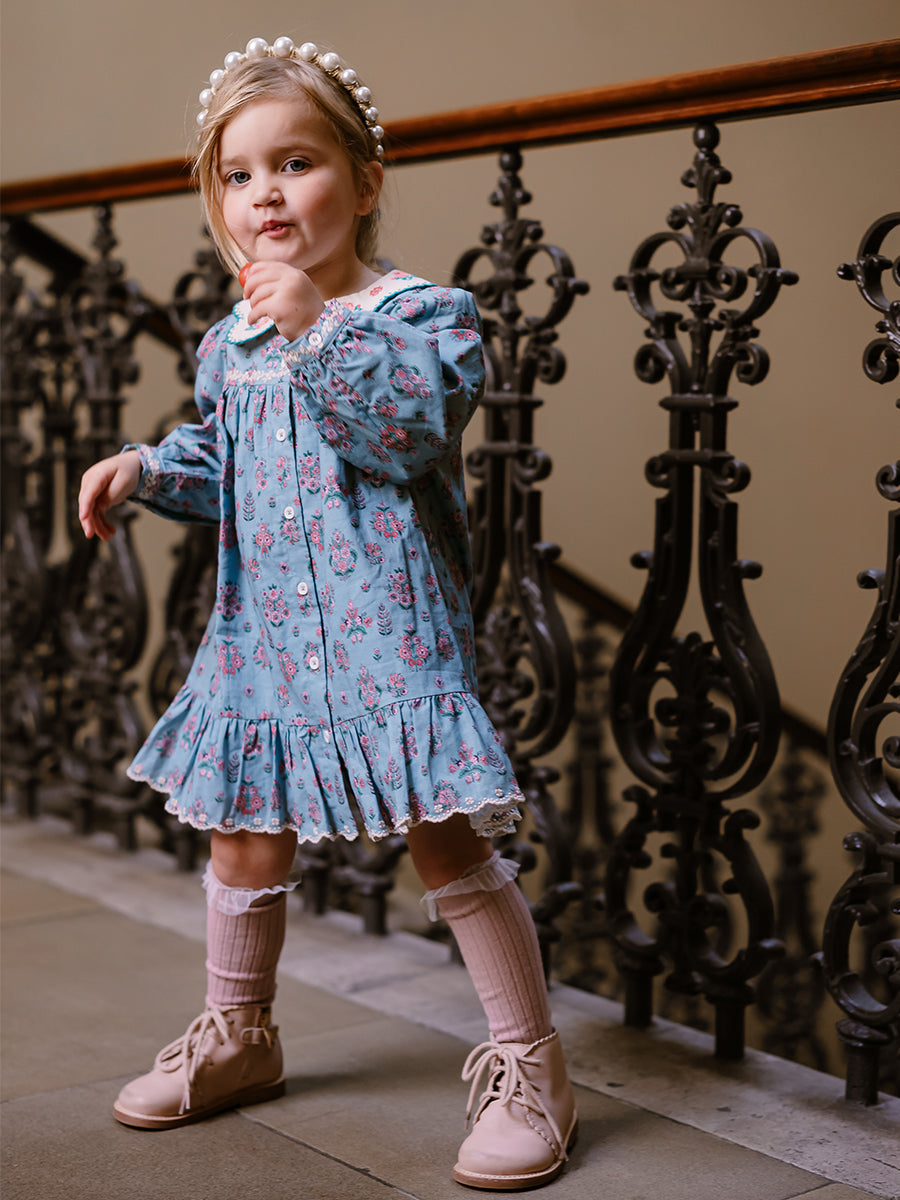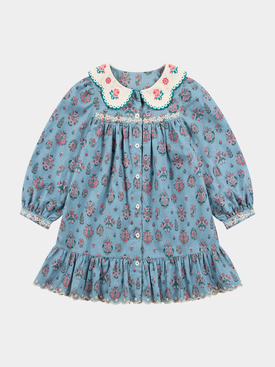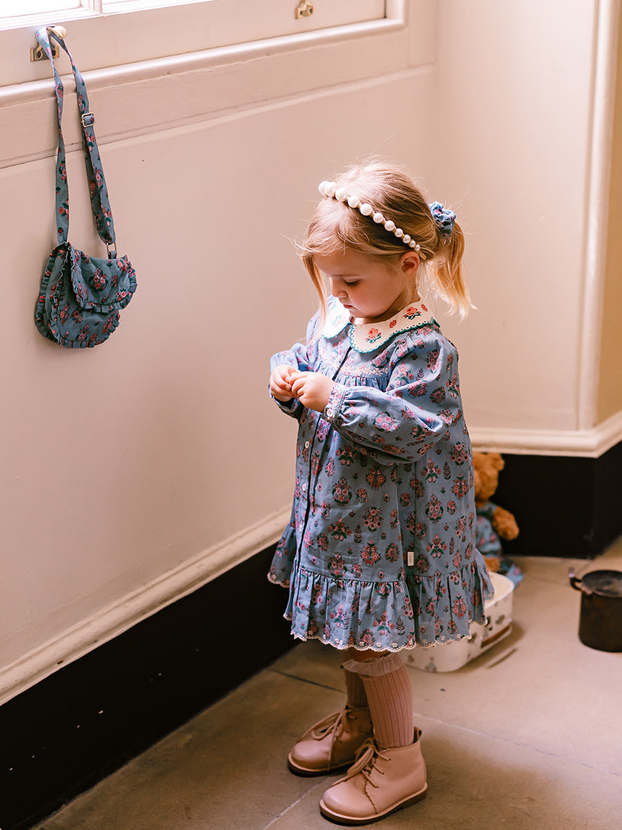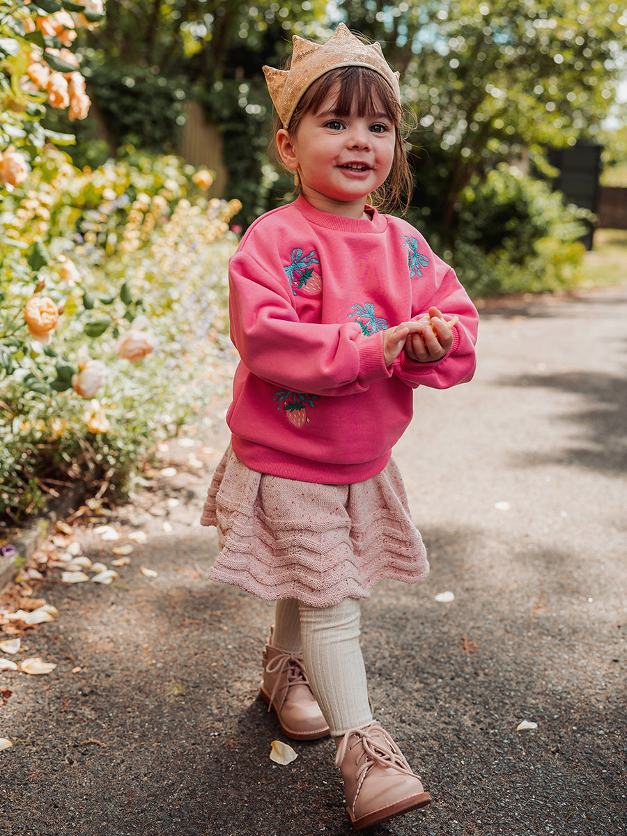 Laila Embroidered Dress, Strawberry Flower Field, Blush