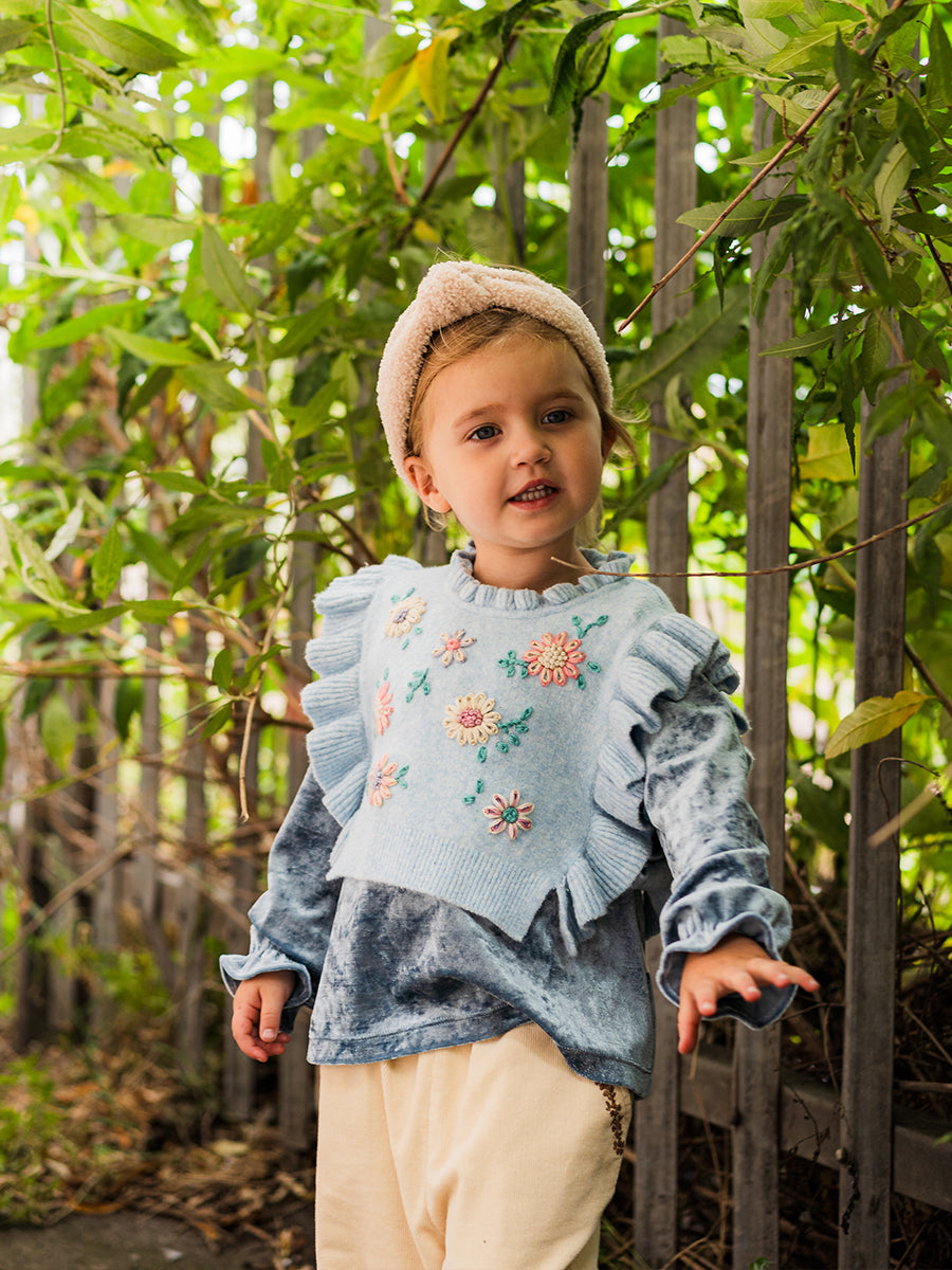 Leila Hand-Embroidered Knitted Vest, Sky Blue