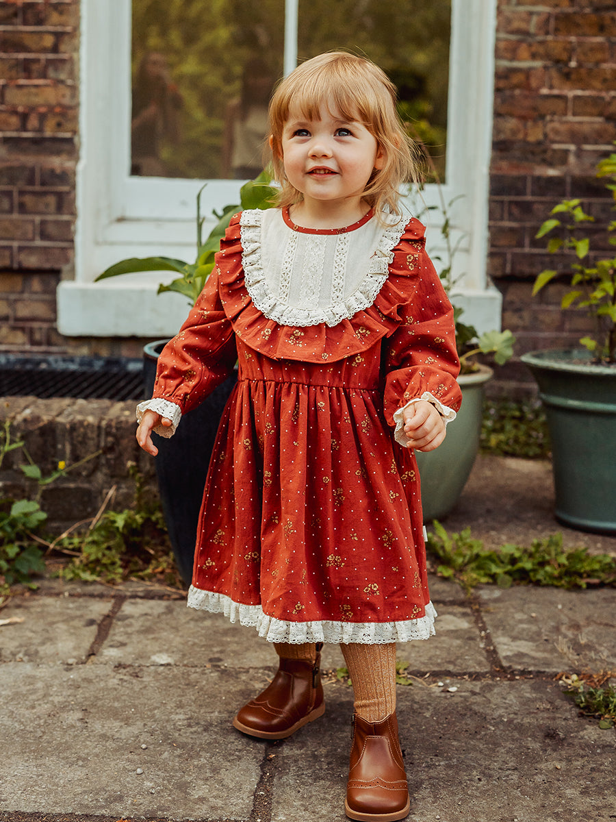 Sally Corduroy Trousers, Wildflower Polka, Burgundy