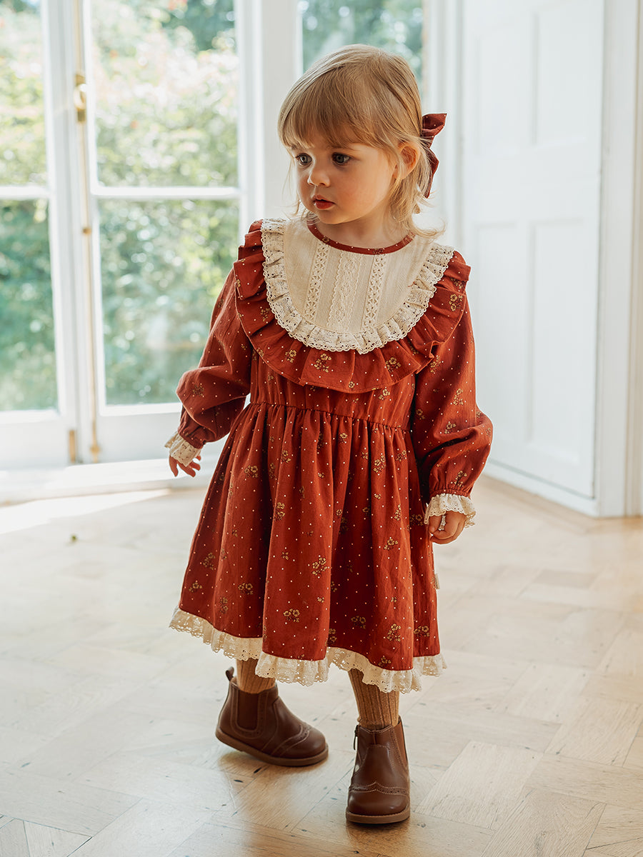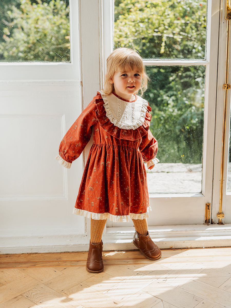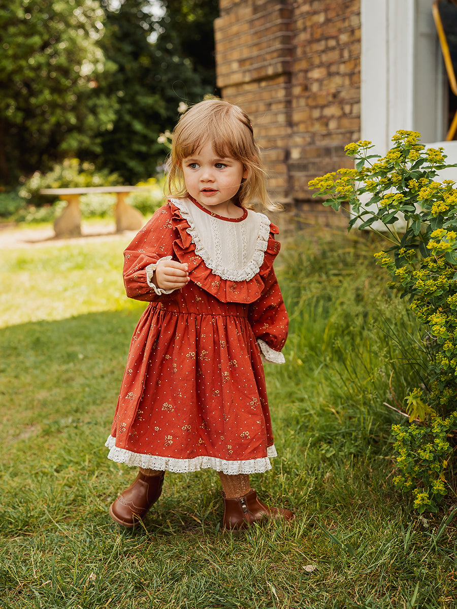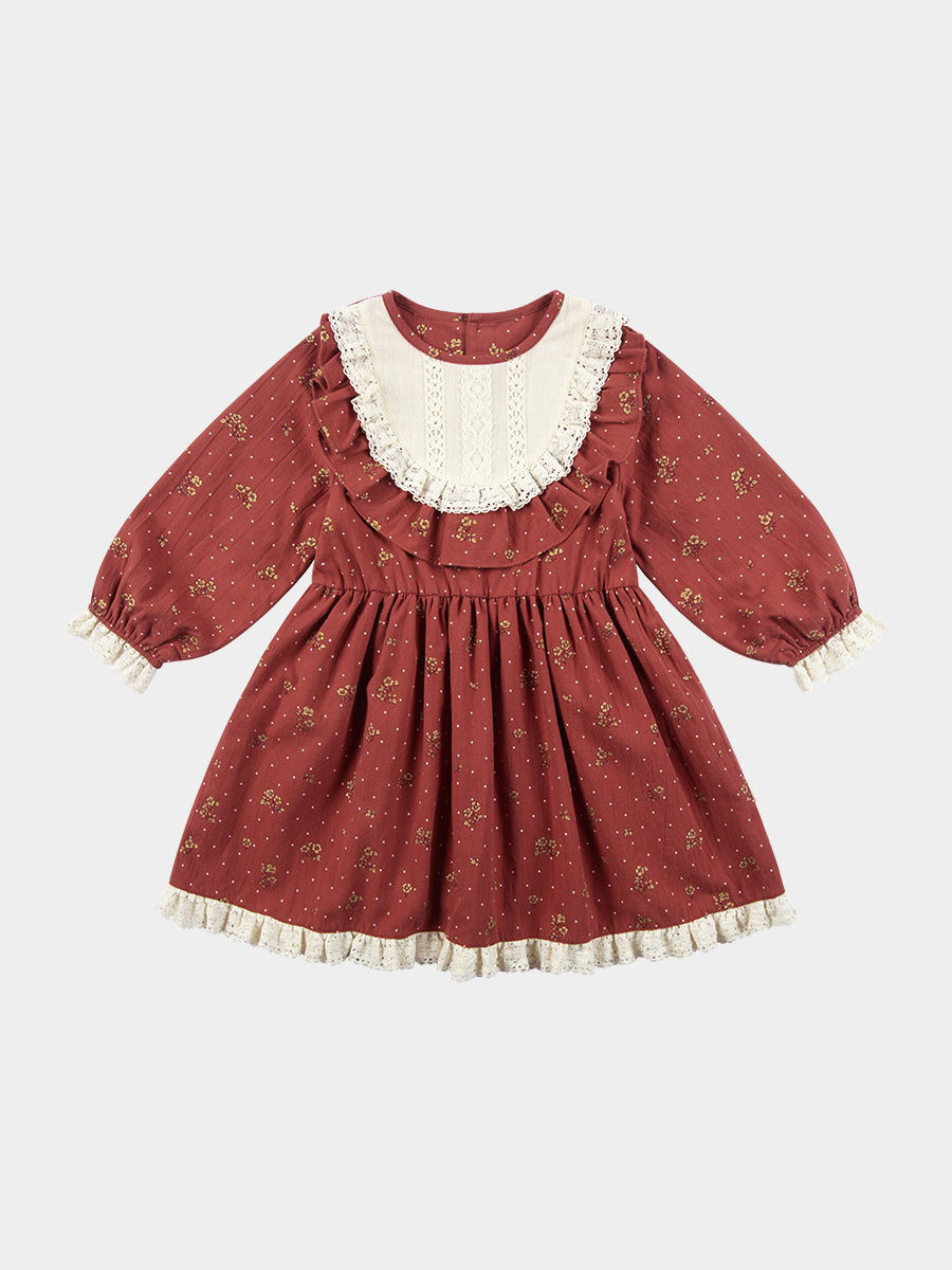 Jacqueline Dress, Wildflower Polka, Burgundy