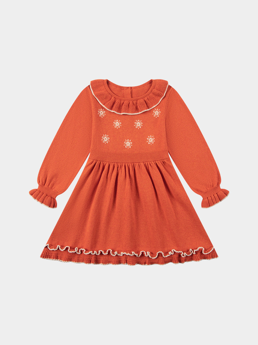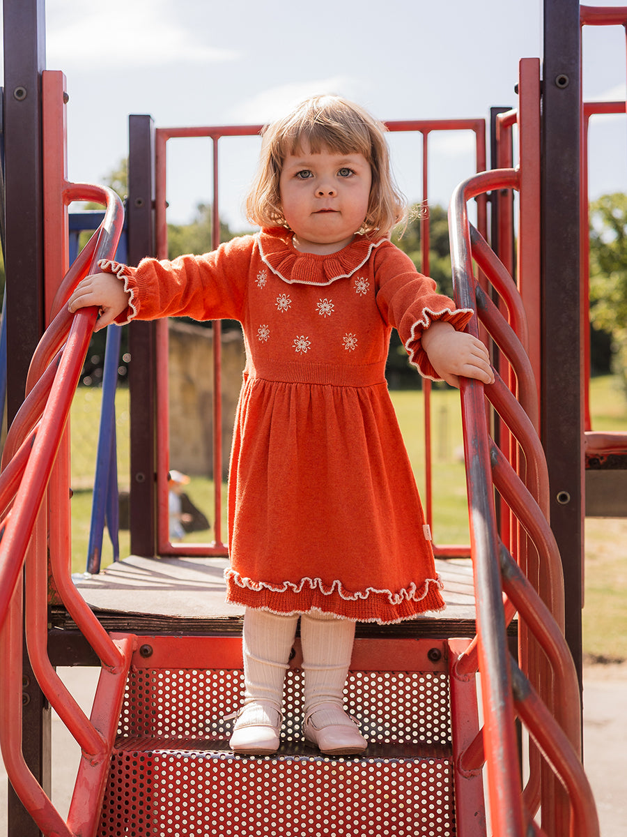 Marie Hand-Embroidered Knitted Dress, Dawn Orange