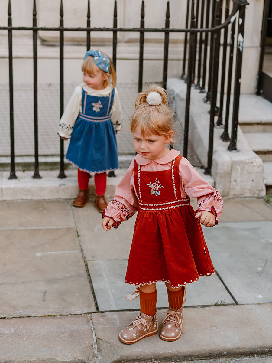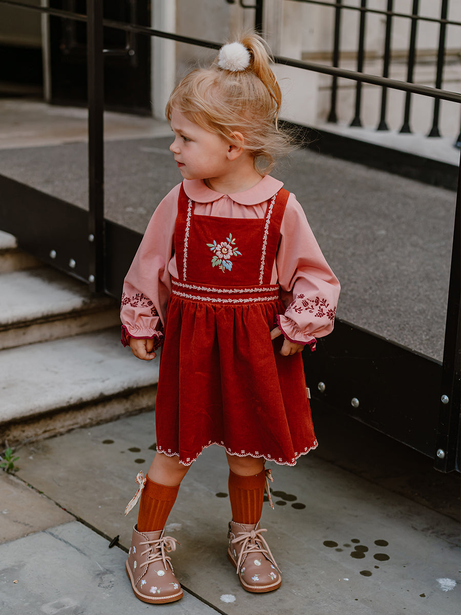 Carey Corduroy Dungaree Dress, Grapefruit Orange