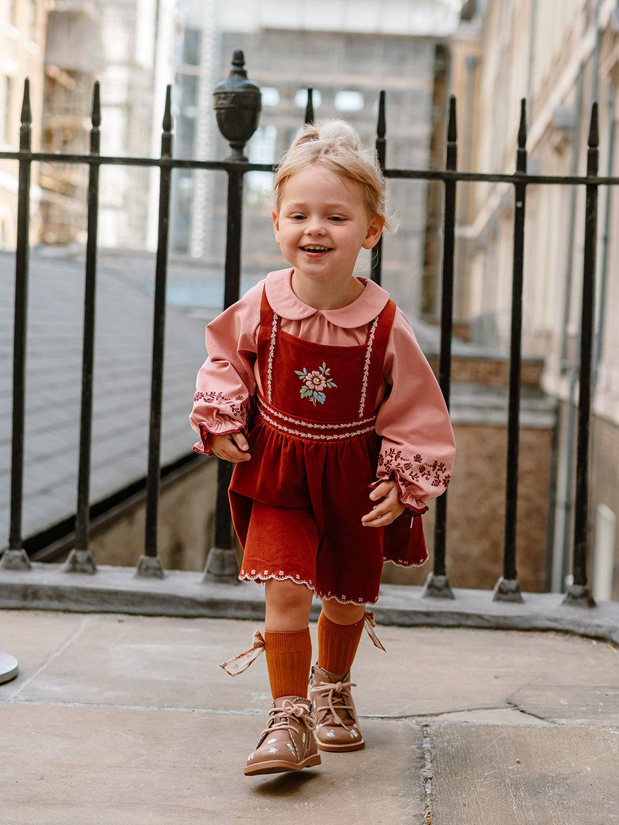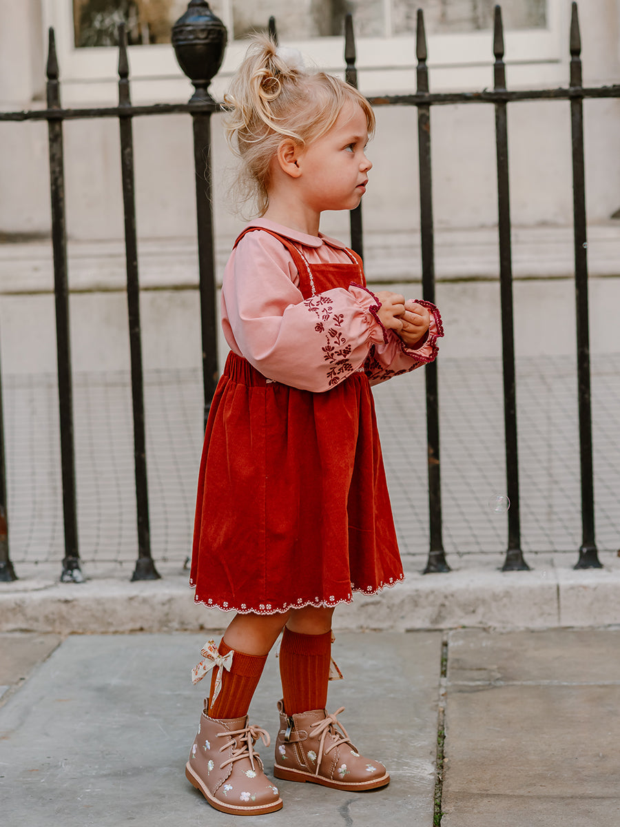 Silene Embroidery Dress, Red Bean Pink