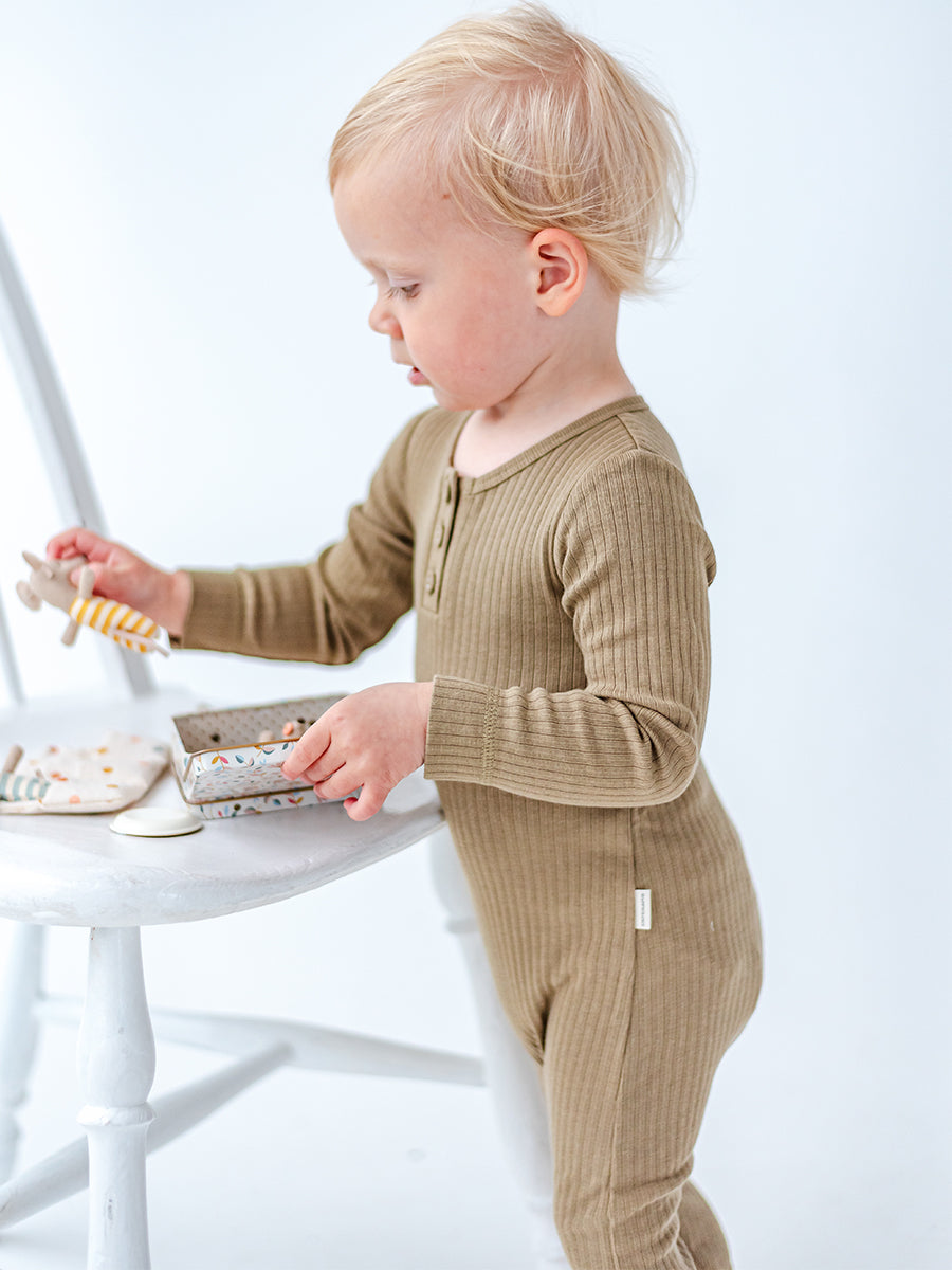 Organic Essential Long-Sleeve Sleepsuit, Moss