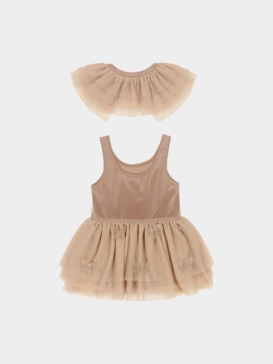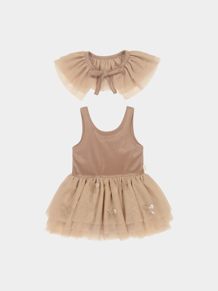 Whitby Tulle Dress & Collar Set, Khaki