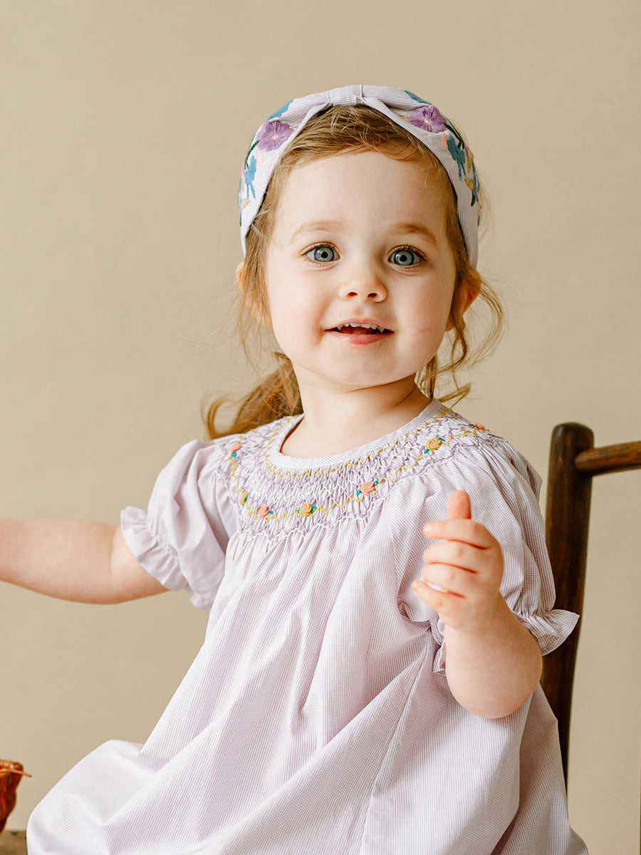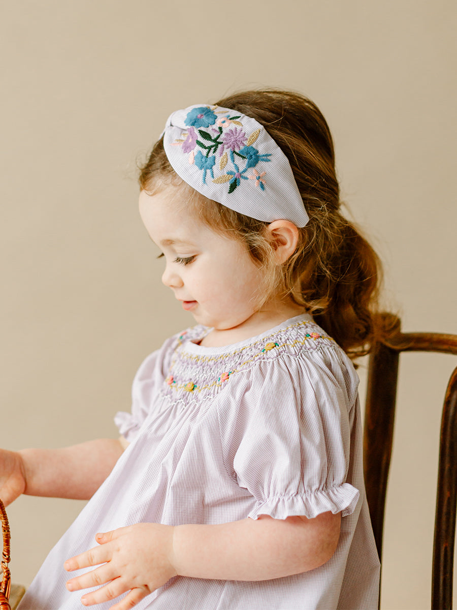 Artisan Embroidery Headband, Purple Check