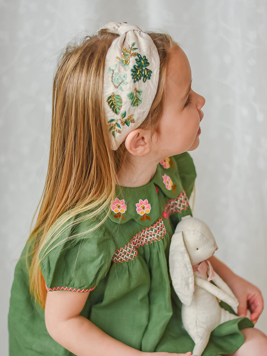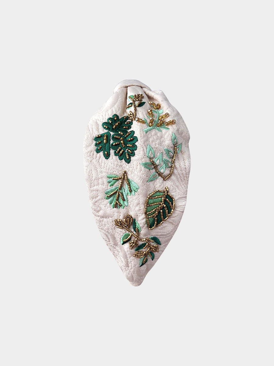 Artisan Embroidery Headband, Beaded Leaves