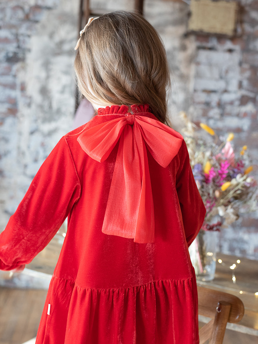 Iris Velvet Bow Clip, Princess Red