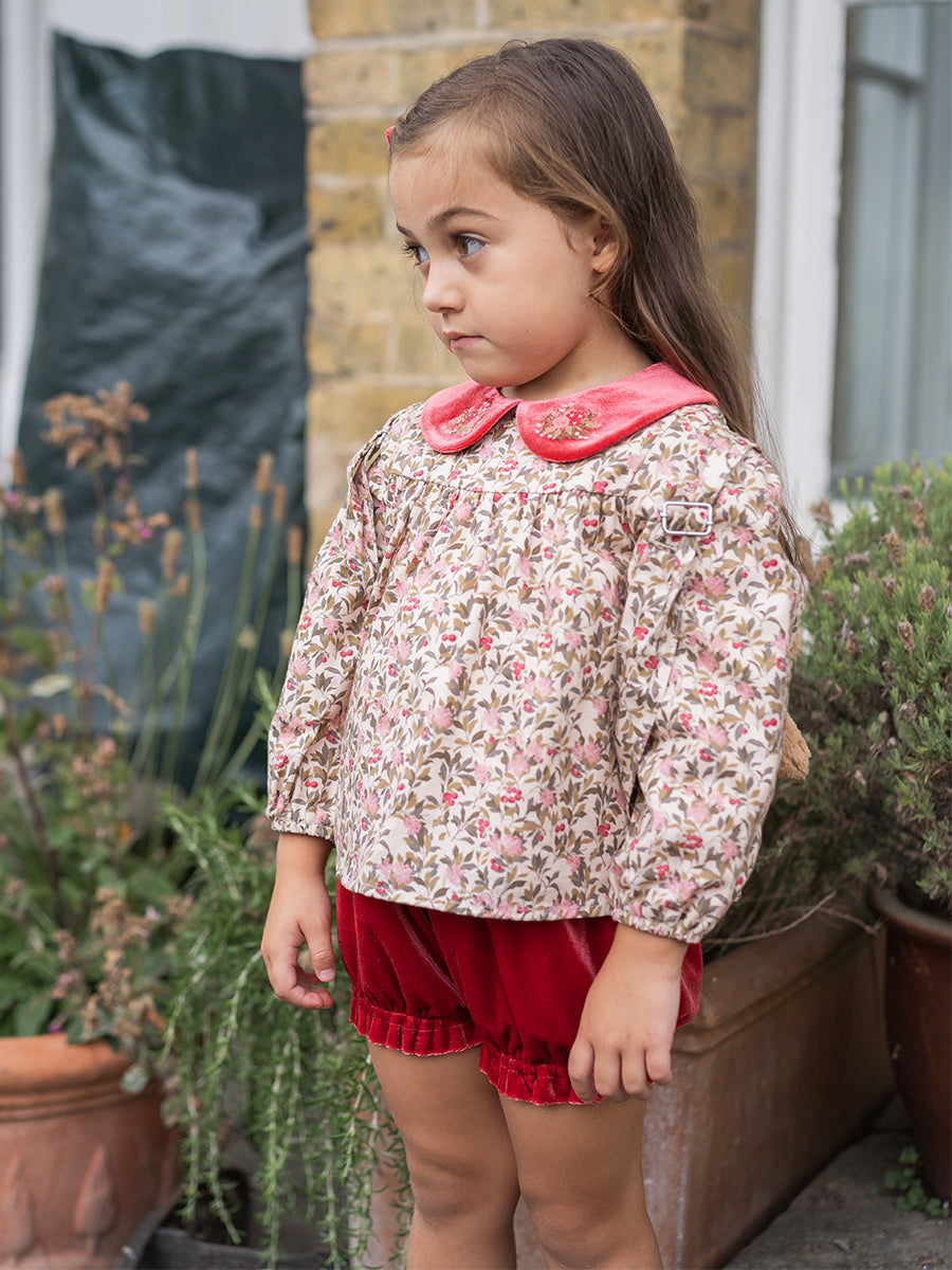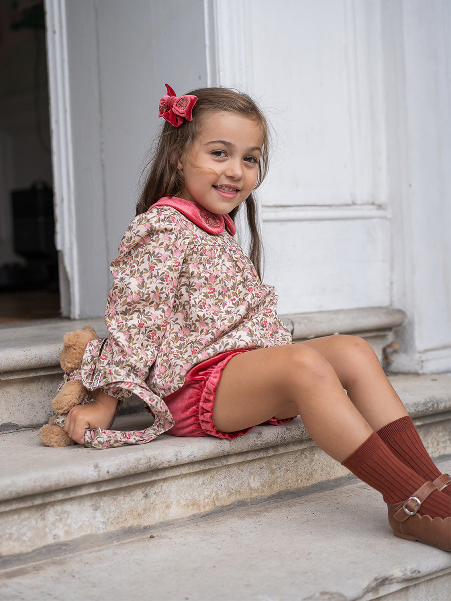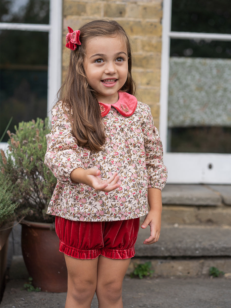Luna Blouse and Bloomers Set, Strawberry Flower Field, Blush